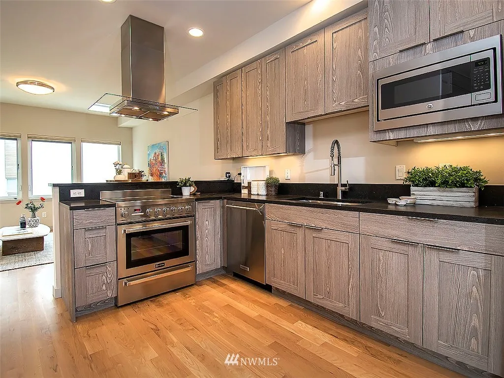 Built in 2016! This townhome has it all: modern design, natural light, A/C, high ceilings, fully-equipped SS kitchen appliances, split level entry, & an open floor-plan. 3 Beds 2.25 Bath. Corner unit with its own parking space. Enjoy your generous rooftop deck, with stunning views of the city, Lake Union, Cascades and Mt. Rainier. Unbeatable location-easy commute to downtown and SLU. Walker's paradise to shopping & restaurants in two of Seattle’s favorite neighborhoods —Wallingford and Fremont.