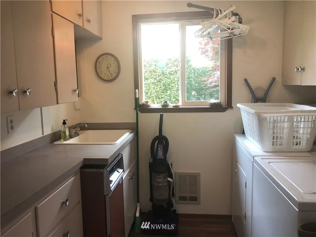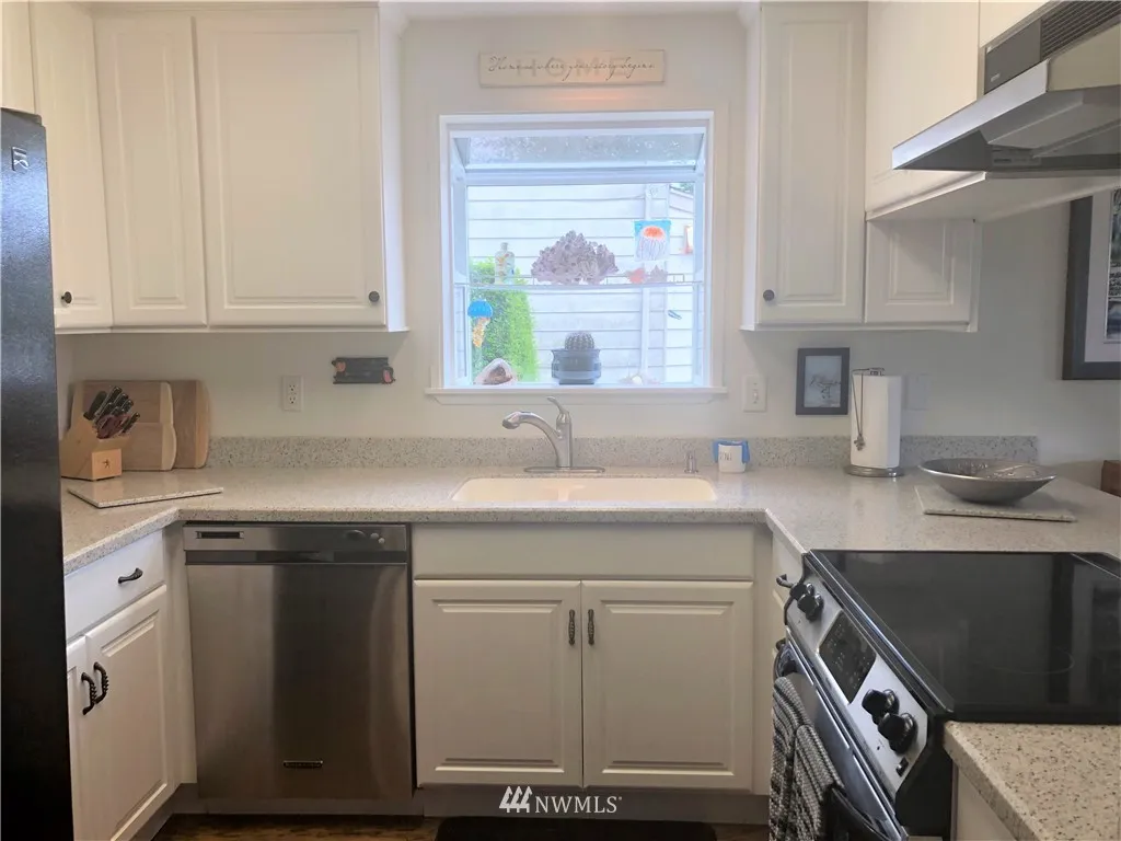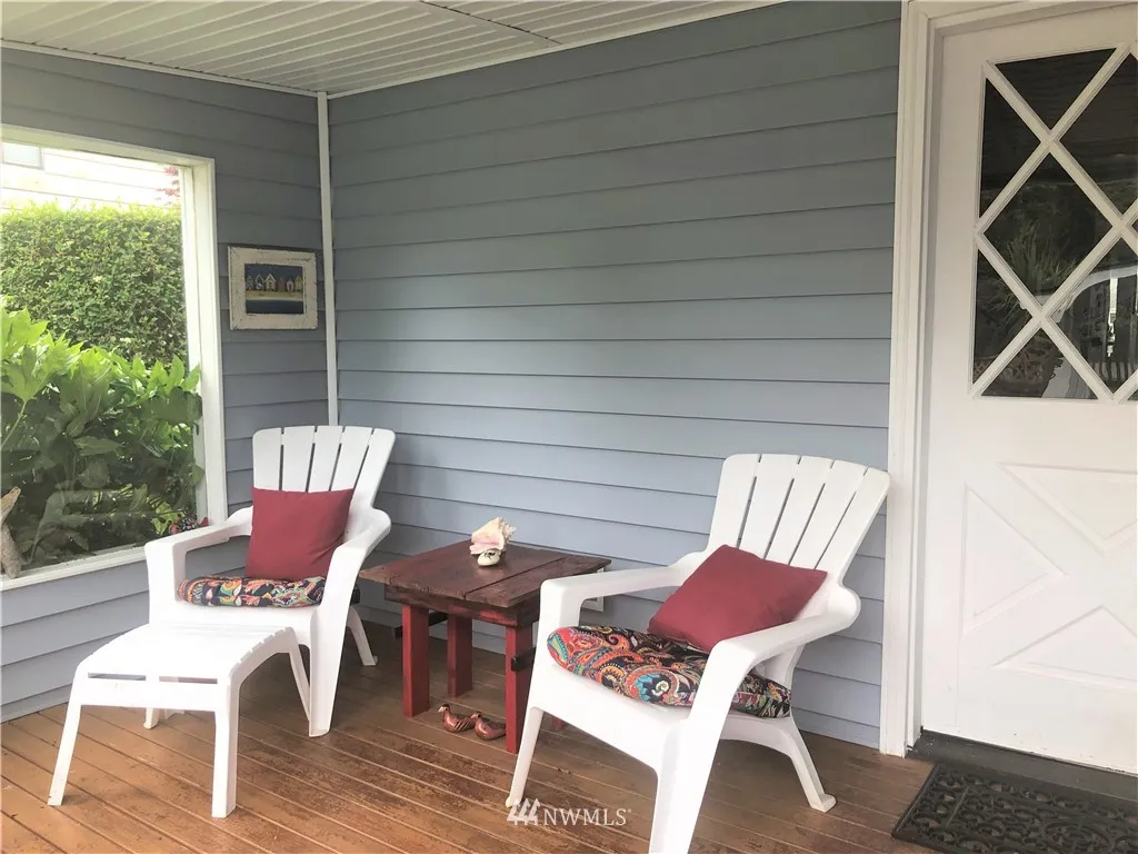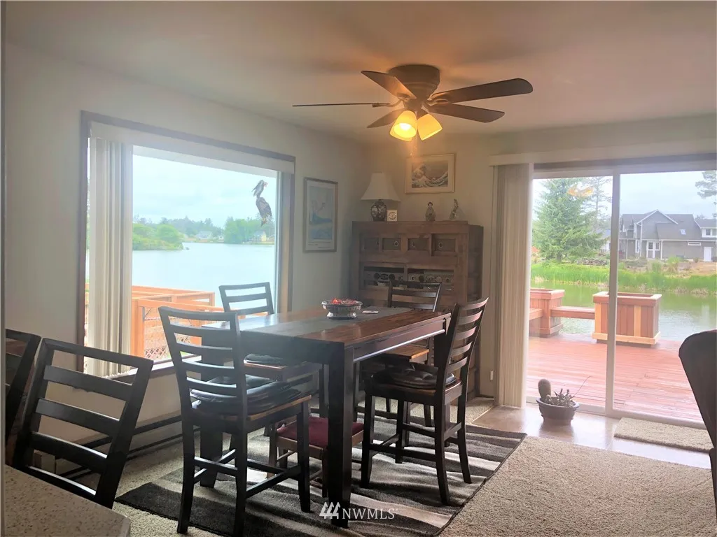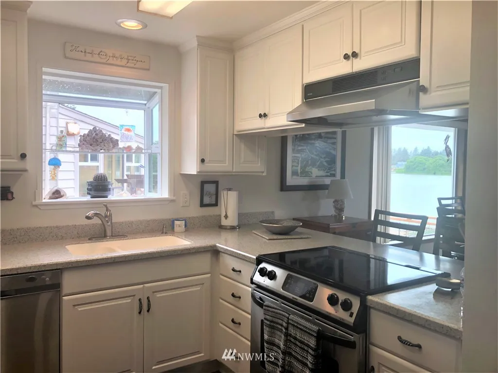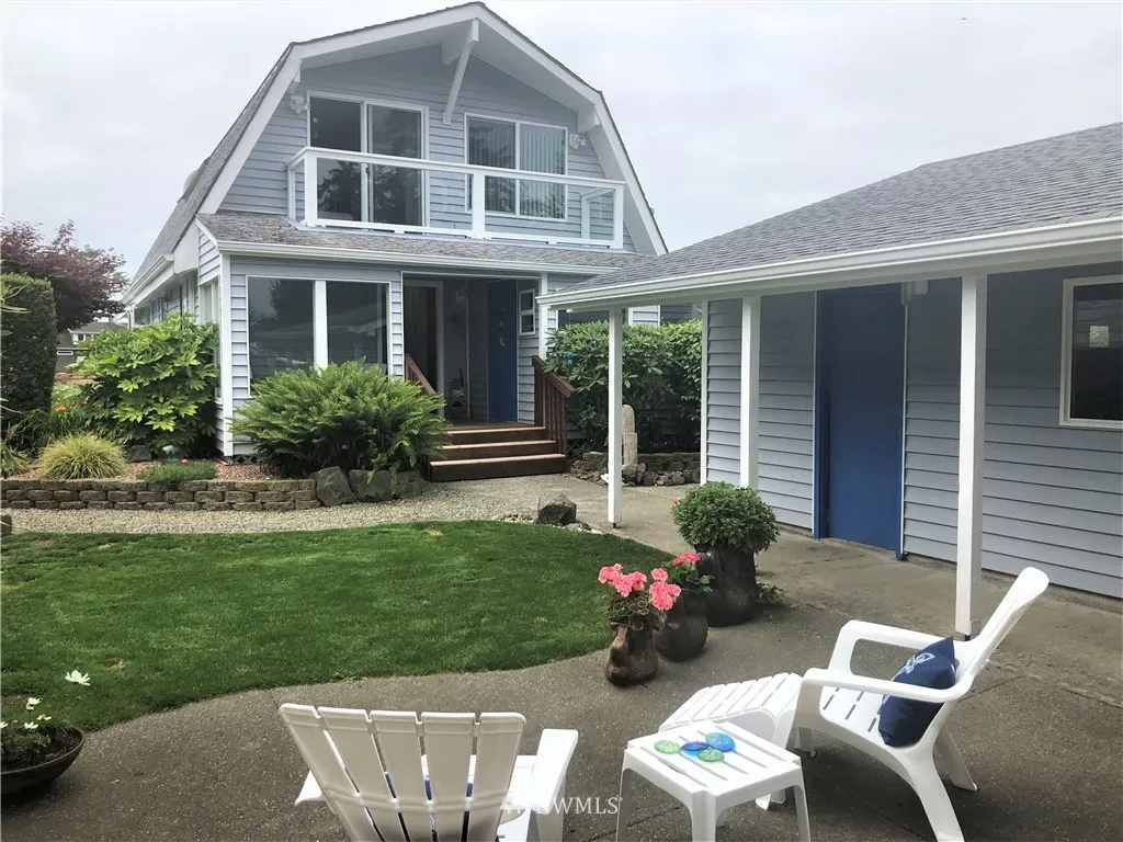 Enchanting lake front house, the moment you open the gate...it feels like home! Lots of storage inc. 2 car garage & out buildings. Fully fenced, incredible landscaping, lg deck spaces & generous sized dock for that perfect lake front vibe. 1 lg bdrm on main level w/2 huge bdrms on upper level. Main living area has stunning lake views. Kitchen boasts white cabinets & gorgeous counters. Bay views from upper level are a sweet little bonus! Well maintained & waiting for new owners, come see it!
