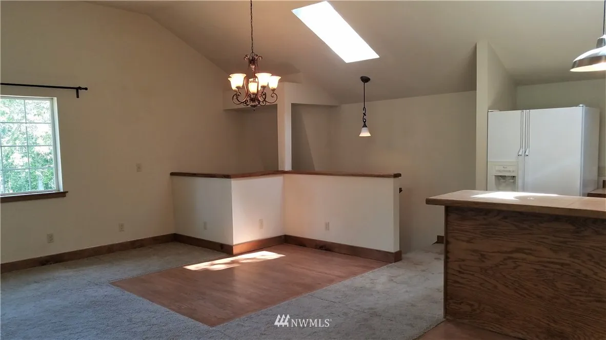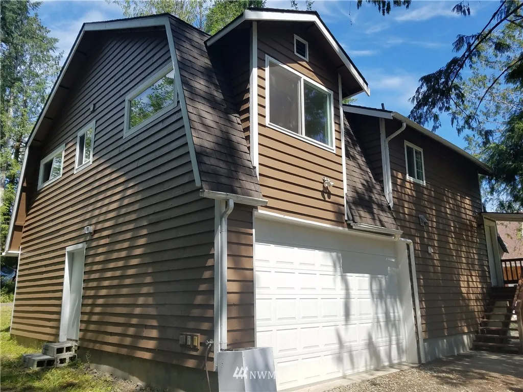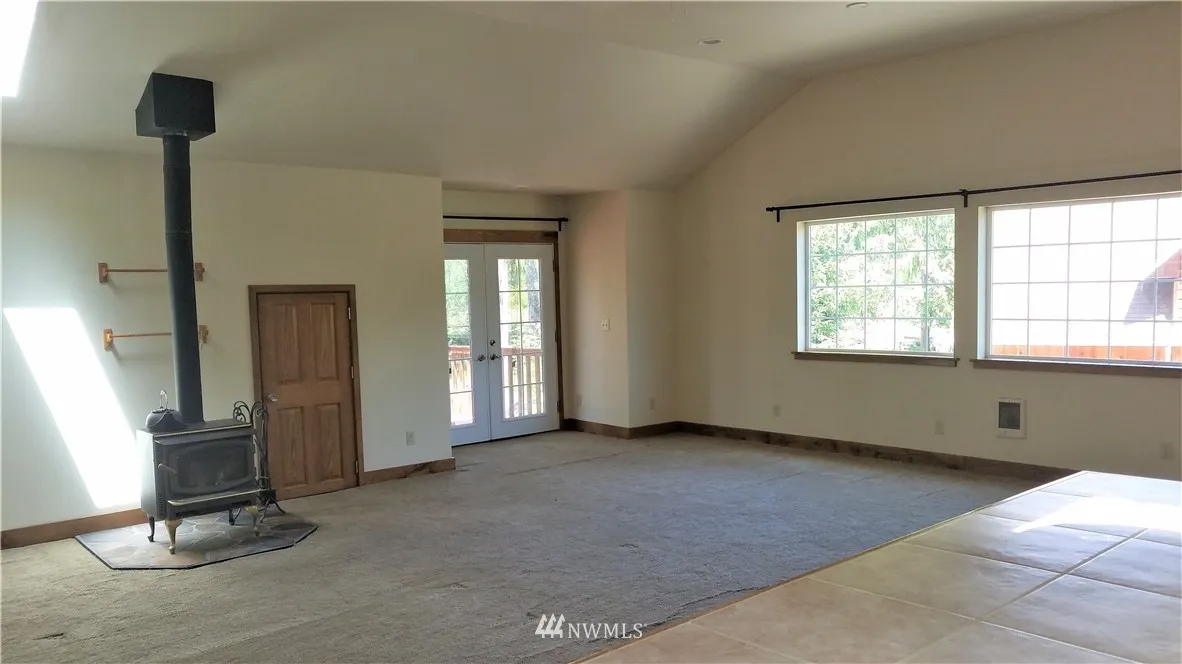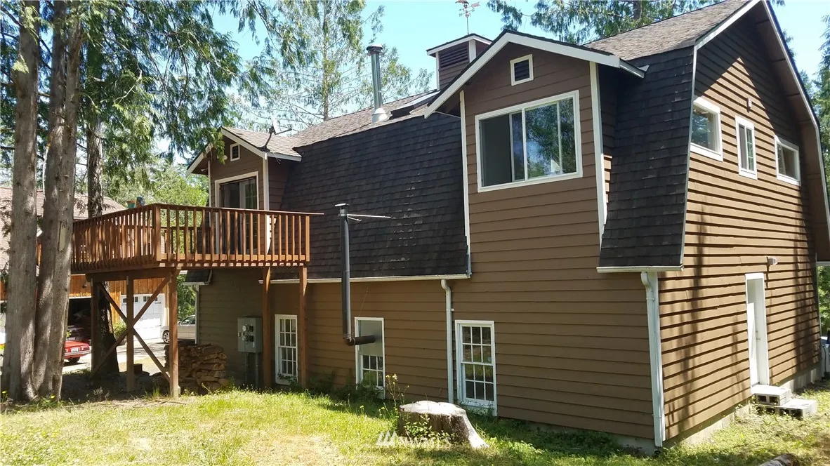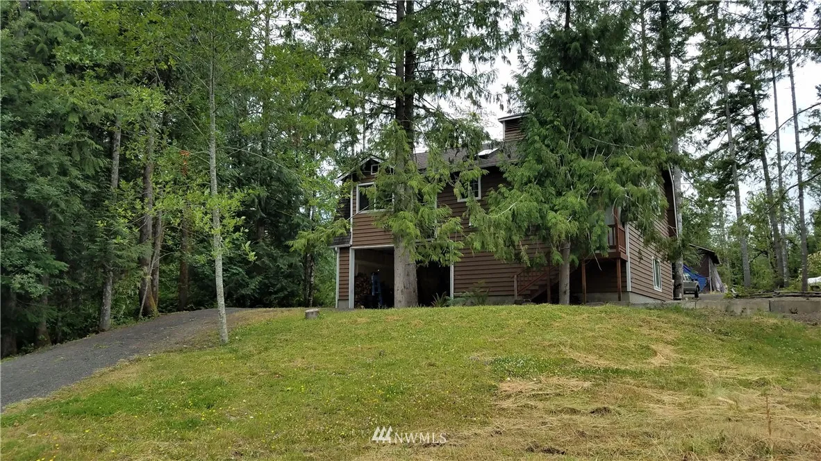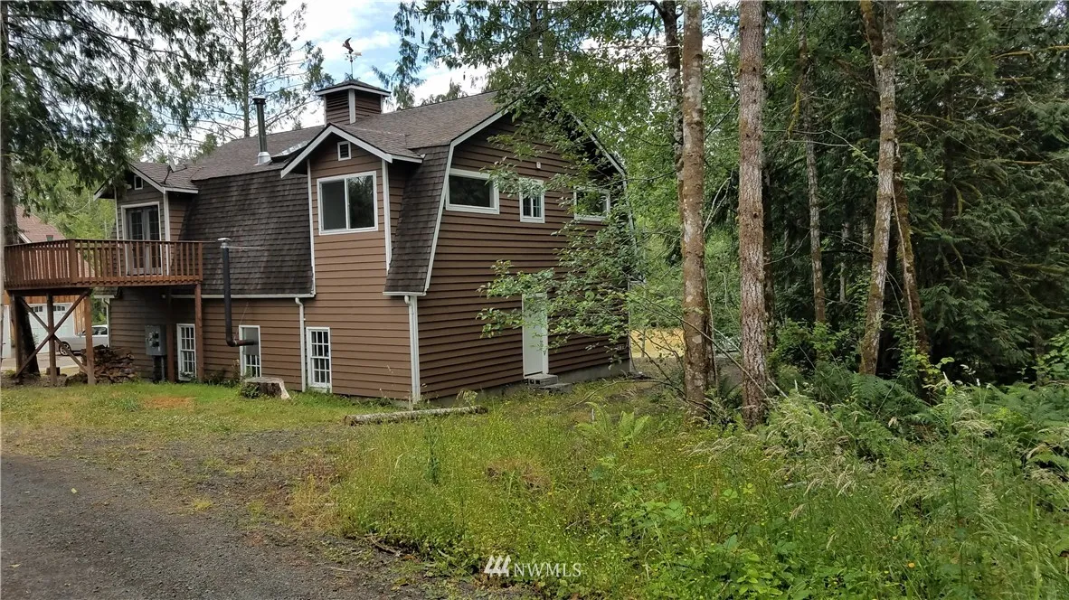 Great Home on a wooded -/Acre Lot. Upper Level: Vaulted ceiling, open-living great room, kitchen & dining area, 2 Bdrm, 3/4 bath, wood stove, skylights, & French doors leading to relaxing deck. HUGE Versatile Lower Level: Wood stove & 3/4 bath... Use as 4-car tandem Garage w/workshop area? -OR- HUGE Shop? -OR- Finish-out as Family Rm / Game Rm, 3rd Bdrm? MIL Apt? LRG home next door. Zone RRR 1/5. Flag lot, balance of acreage separate from homesite. 3 Bdrm septic. Unique. TONS of potential!
