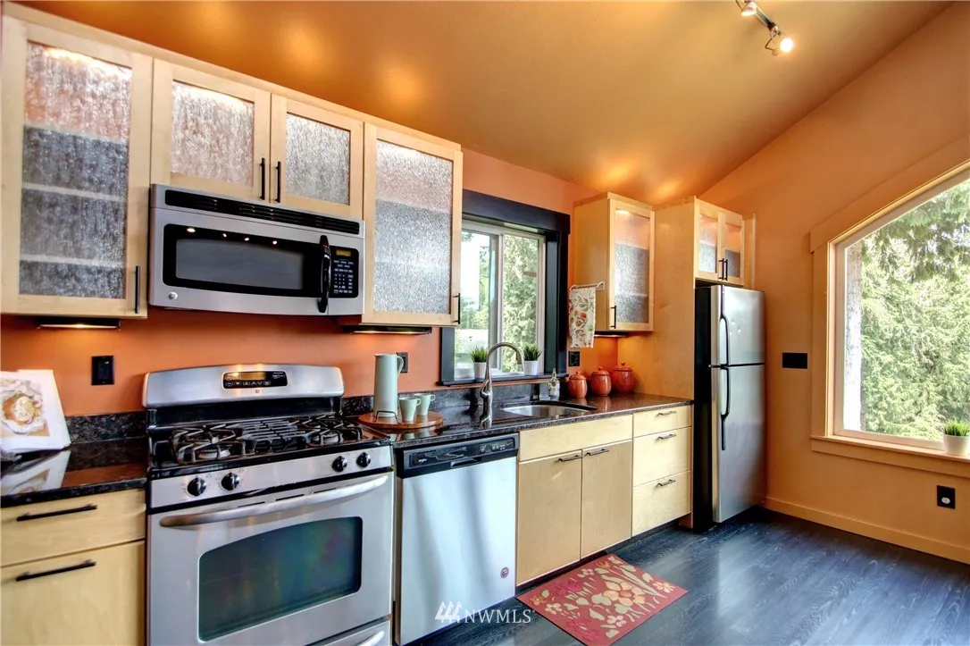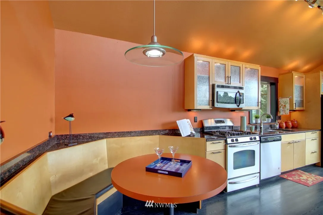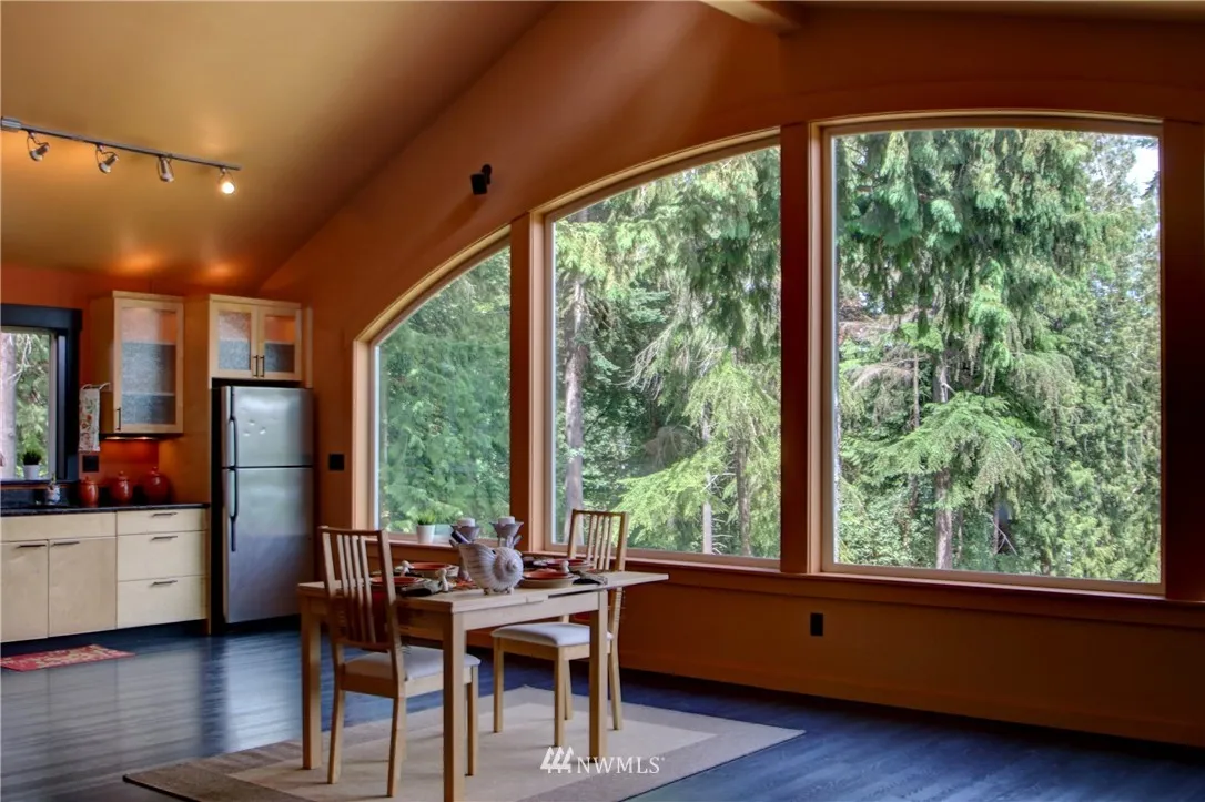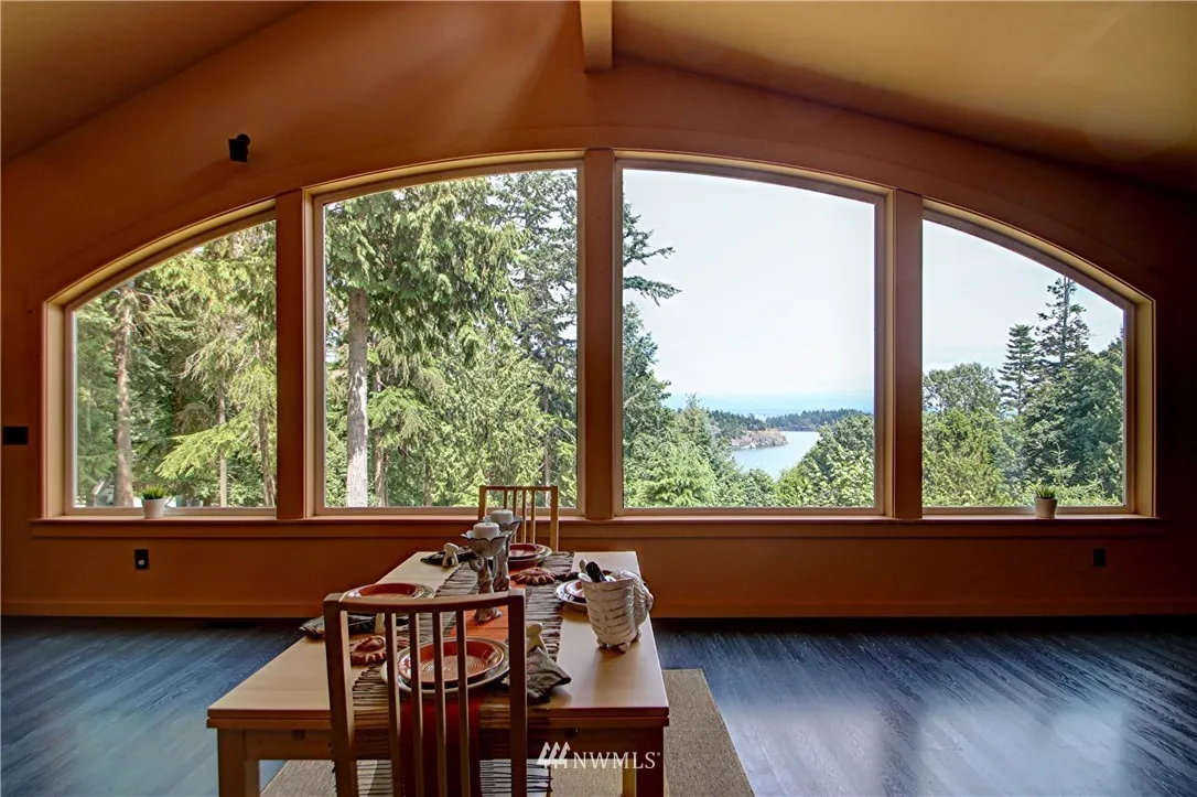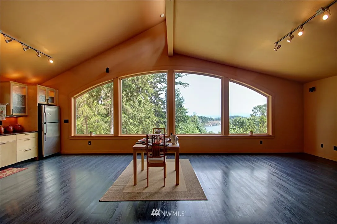 Soaring windows show off unbeatable views of Mt. Baker, Long Bay & Huckleberry Island in this 2-bed, 2-bath home on a sleepy lane on Guemes Island. Breakfast nook combines with gourmet kitchen along one wall. Great room for living & dining; unique lighting, a cozy wood stove for winter storms. DIY dream garage wired for TV; add one wall & create more living space. Can you say VRBO? Outdoor view deck, small log cabin, fire pit. Close to beach to stash skiff or kayak; crabbing, fishing.