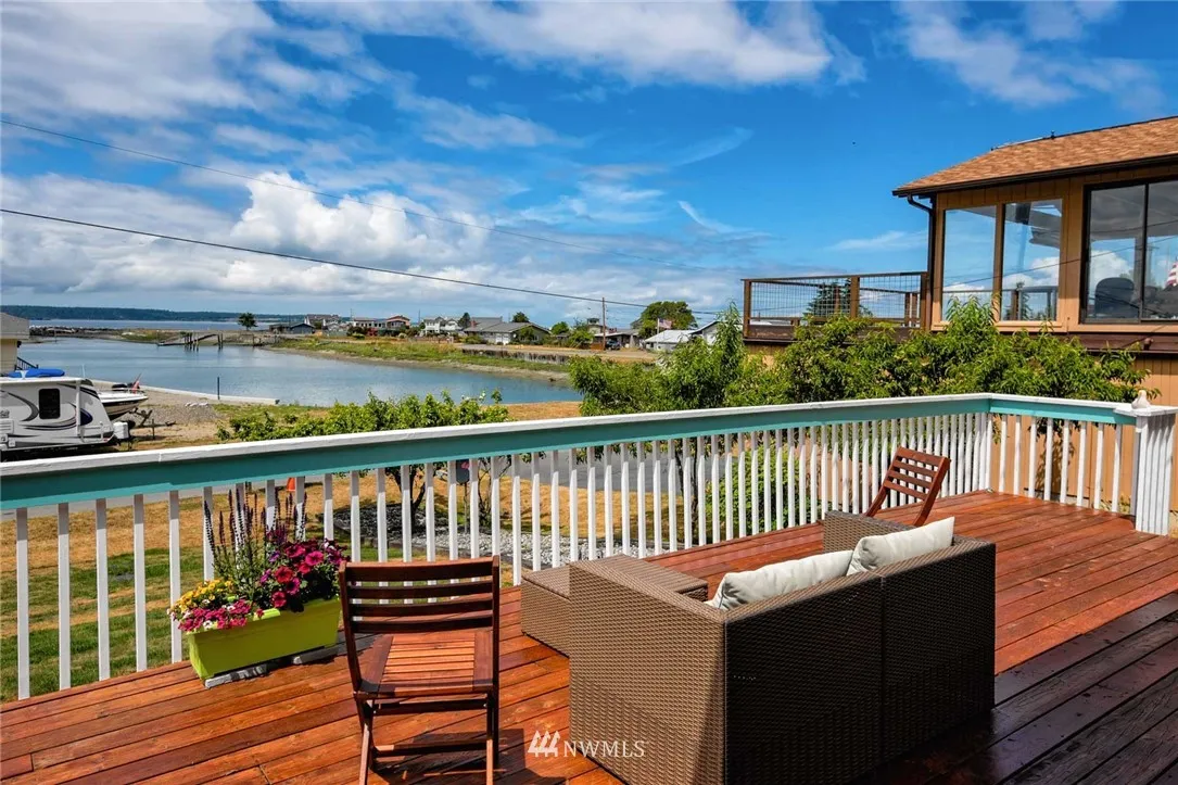 Embrace the stunning protected views from this classic Whidbey beach home. Enjoy the Olympics & shipping lanes from the expansive view deck bathed in sunshine or take a reprieve on the cozy back patio. Cruise ships pass as grand picture windows embrace the natural light & sunsets create a colorful & inviting ambiance throughout. Embark on the Sound with the ease of the comm. boat launch within sight & endless days on the beach. Adjoining buildable lot also available and waiting for your plans.