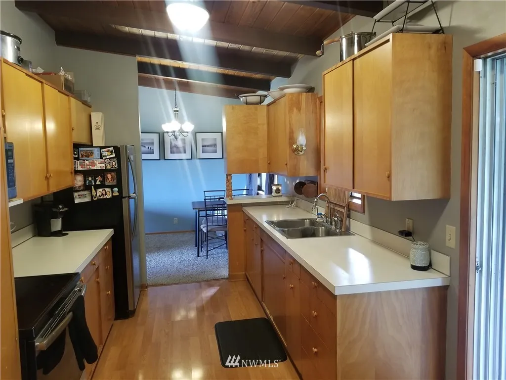 Gorgeous exposed wood beam ceilings throughout this 3 bedroom 1.5 bathroom well-maintained home in the highly desired Longview Heights neighborhood. New front deck, private wooded backyard with deck and firepit perfect for warm summer nights. Plus a wood fireplace on each floor for the cold winter nights! Bonus large finished daylight basement to use as you wish with brand new sliding barn door currently being used as master. All with an amazing city view! Private backyard but close to town.