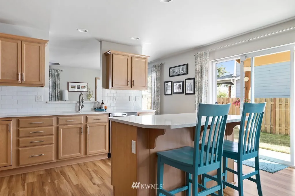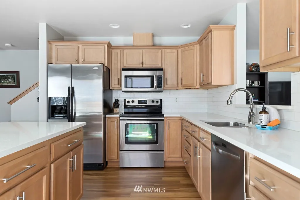 This close to everything & well maintained home has everything you've been looking for! Perfectly laid out open concept floor plan downstairs creates a great gathering space w the Kitchen & dining area opening up to the family room! Even a separate Living Room! Kitchen w an island & pullout drawers, stainless appliances, & quartz counters! Master w walk in closet, dual vanity in bath & large shower. Fenced yard & the open neighborhood space is just behind the house! Short stroll to school & base