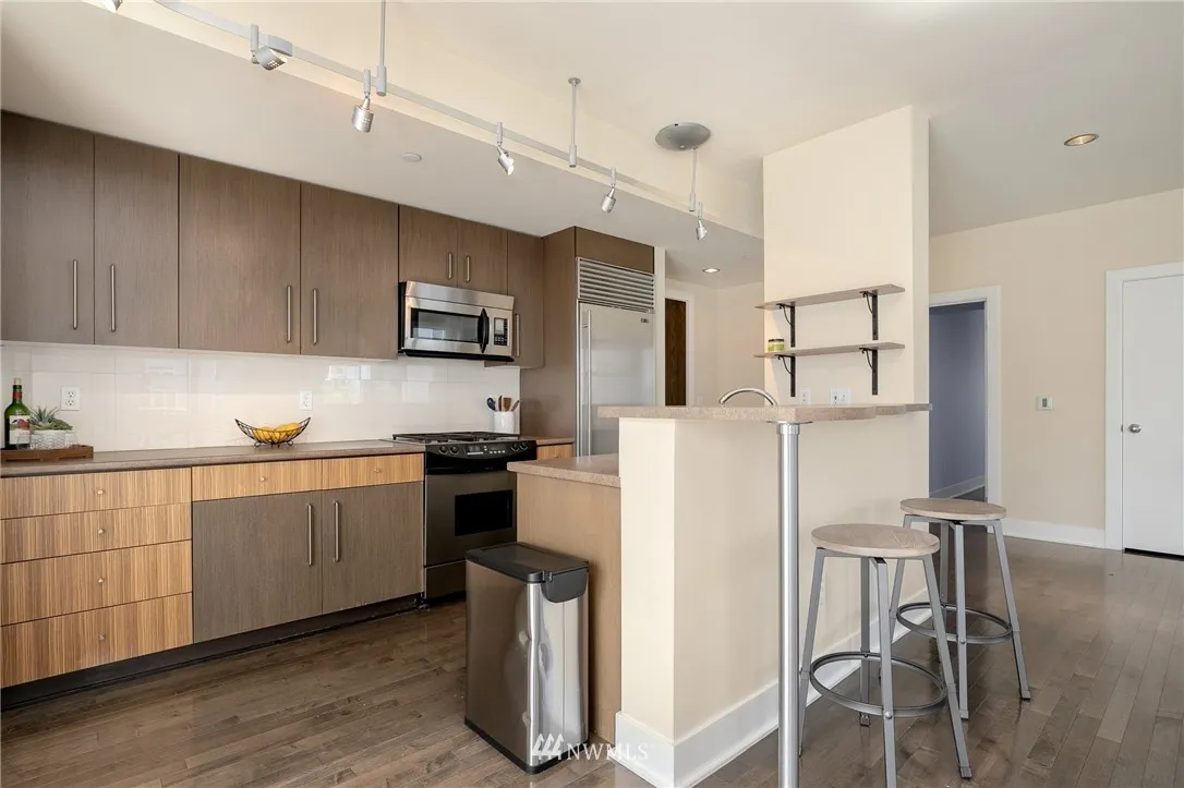Fabulous 2-bed condo in the heart of Capitol Hill! You can't get much better than the corner of Summit & Pine with a 99 Walk Score! Just blocks from downtown, & light rail. This corner unit has lots of windows for natural light, 9ft ceilings, hardwood flrs throughout. Well-equipped kitchen with top of the line appliances including Sub-Zero Fridge, ASKO dish, and Dacor range. Large master with custom walk-in California Closets. In unit W/ D. Private deck. Secure parking garage with deeded spot.