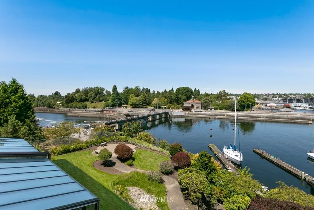 Dynamic Locks & Ship Canal Views In Magnolia! Front-row seats to a palette of real-time maritime scenery! Sited in a special neighborhood enclave with active day & nighttime views of the canal, boats and wildlife! Embrace a serene setting, spacious living spaces & numerous amenities! This updated 2nd-floor unit offers a circular floor plan, gas FP, enclosed balcony, secure parking with level access. Building amenities include elevator & outdoor pool. A special slice of Pacific Northwest beauty!