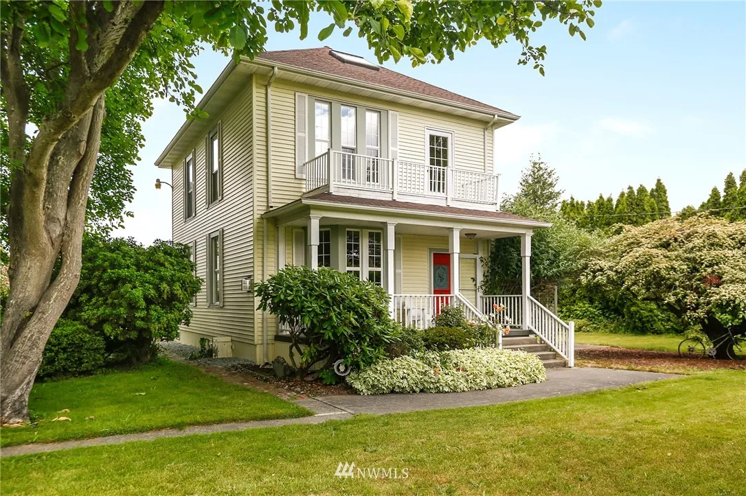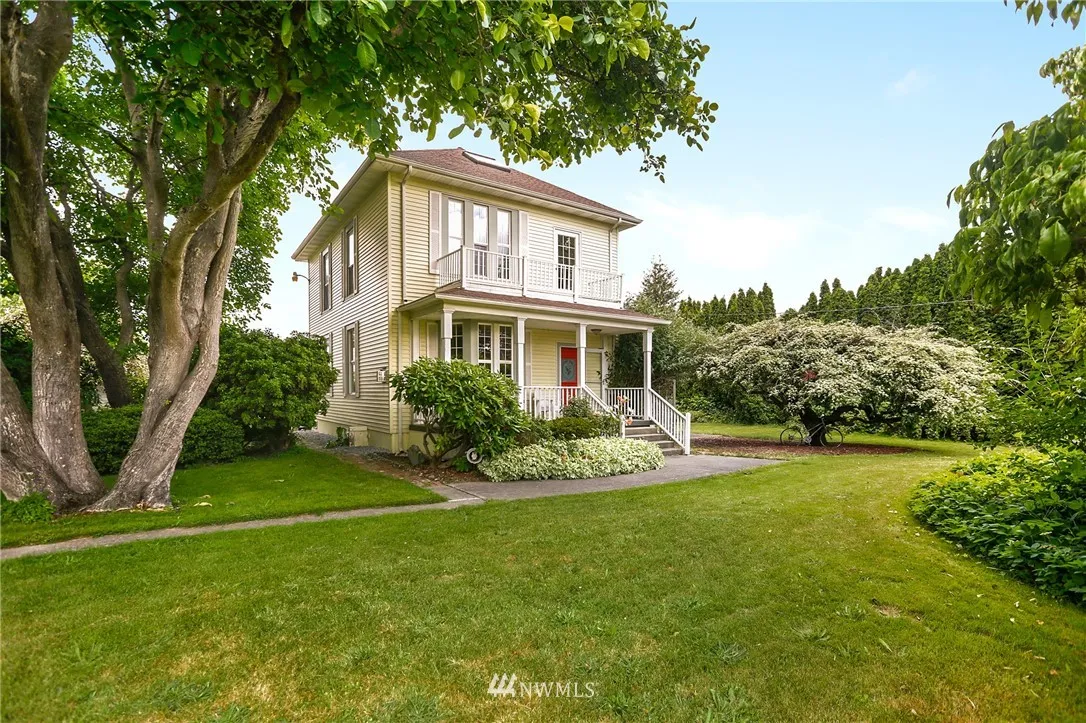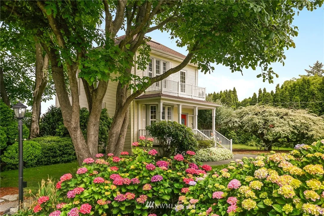 Historic Skagit Valley farmhouse w/a seamless blend of Old World charm & modern updates. Formal living/dining rms - both w/FPs. Chef's kitchen w/abundant storage/work space. Main floor den w/built-in bookcases. 2nd level w/3 beds, reading nook & bath w/clawfoot tub. Upper level loft w/skylights. Numerous outbuildings including flower shed, chicken coop & 2 car garage. Delightful yard w/rose garden, hydrangeas, rhodies, fruit trees, circular drive & ample room to garden, relax, entertain & play!