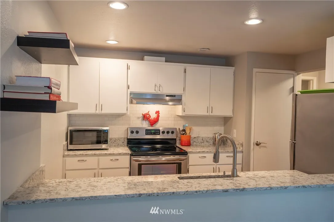 You are home! A rare find in the heart of Kirkland. Incredible remodeled property w/ private garage & private additional storage room. Quartz counters, stainless appliances, under-mount sinks, bamboo hardwood floors, fresh paint, new heating system & plumbing fixtures, new vinyl windows. Charming WEST facing patio and private rear patio. Full-size washer and dryer. Super easy access to commuter lines, bus routes, park & ride. No rental cap or pet restrictions. Guest parking.