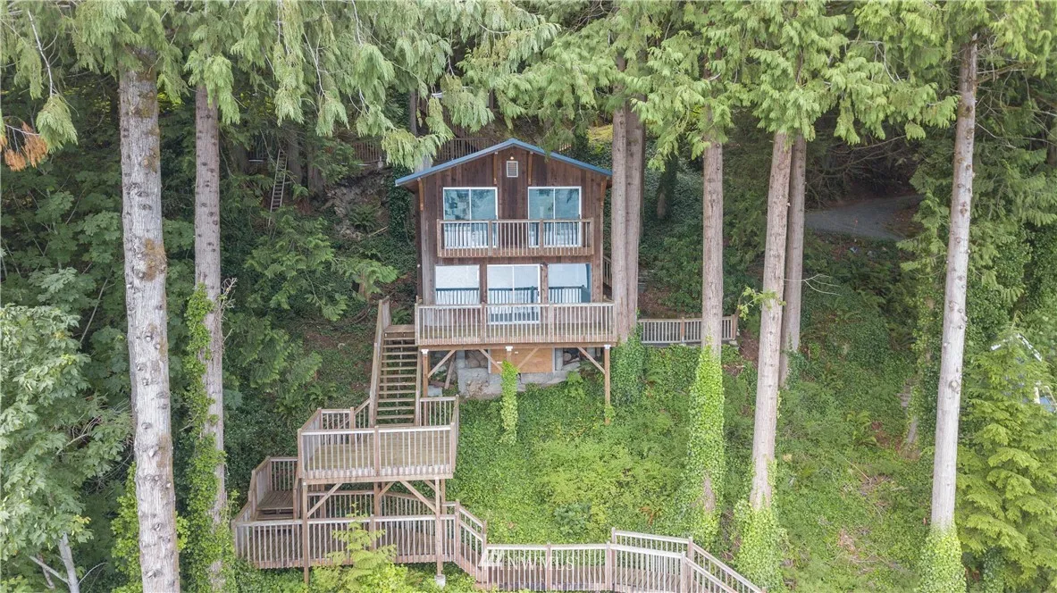 Quintessential Lake Whatcom cabin w/unparalleled lake & mountain views + NEW dock! Live on permanent vacation mode in this private, 2BR/1.5BA lakeside cabin w/sliding glass doors & deck access in every room, large windows & 7 skylights bring in tons of light despite being tucked among the trees. Relax on one of two decks or any of the multiple landings leading down to the lake. Enjoy all the activities & luxuries lake life has to offer! Minutes from local market, 18-hole golf course & more!