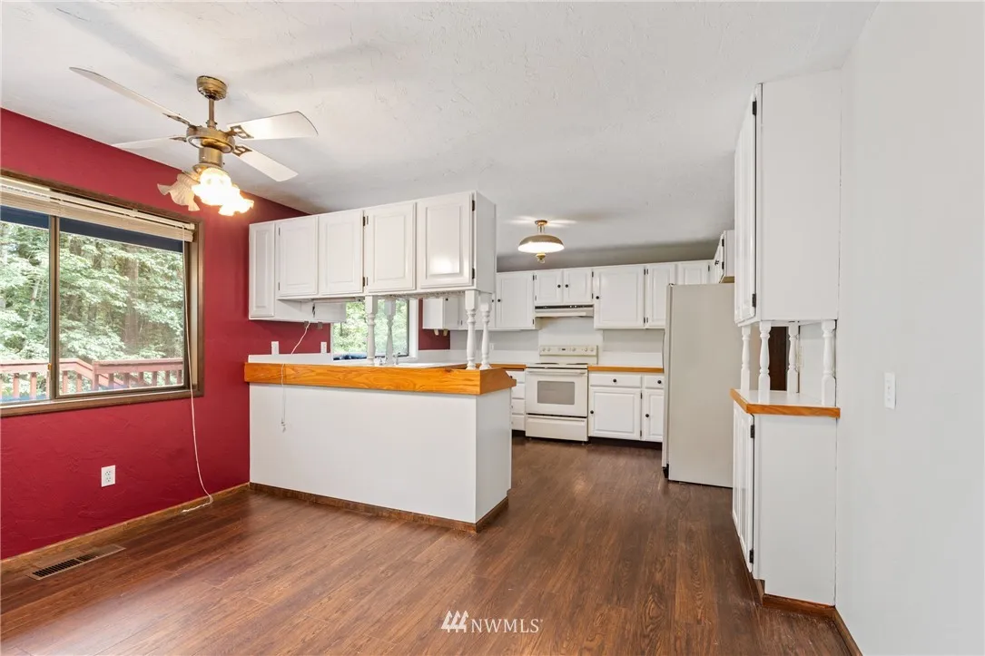 Private living! Great Location. Home features lots of upgrades, New windows, new interior and exterior paint, laminate flooring thru out the main level. Painted cabinets, tile counter tops and bathroom flooring. Newer decks and roof. All of this plus 3 bedrooms plus office. 24x36 shop on 4.02 acres. This won't last long!