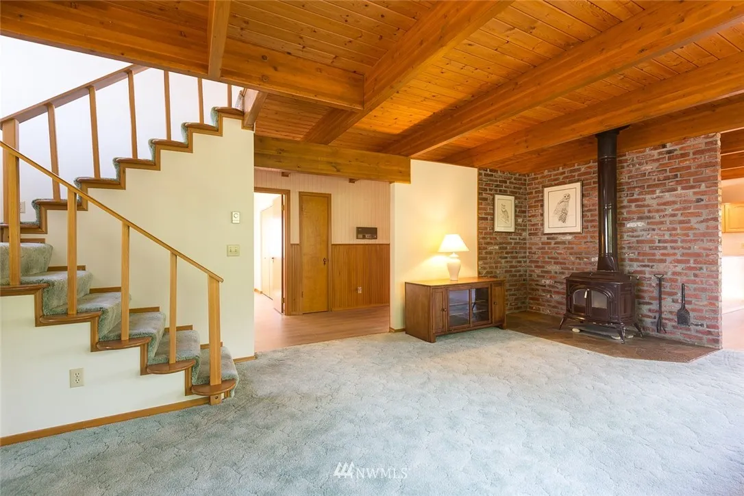 Rare find on scenic Marine Dr with an expansive view of Dungeness Bay from the front and the Olympic Mtns. in the back on 2+ acres. Beach access across the road. Newly remodeled kitchen, bathrooms and new flooring. Sun-room off dining room with space to grow plants and enjoy the hot tub. Garage space available for up to 6 vehicles with both garages (2448 square feet in total) & RV parking. Garage in rear building is wired for a shop with 2 custom work benches. Vermont Castings wood stove.