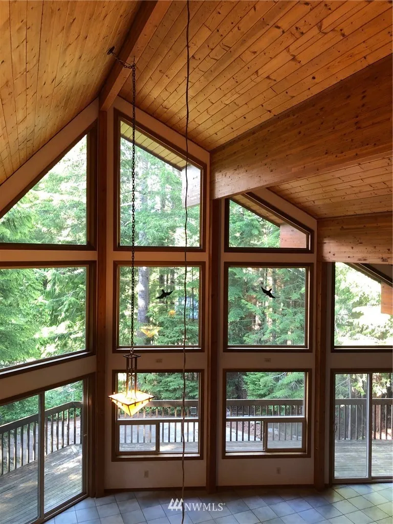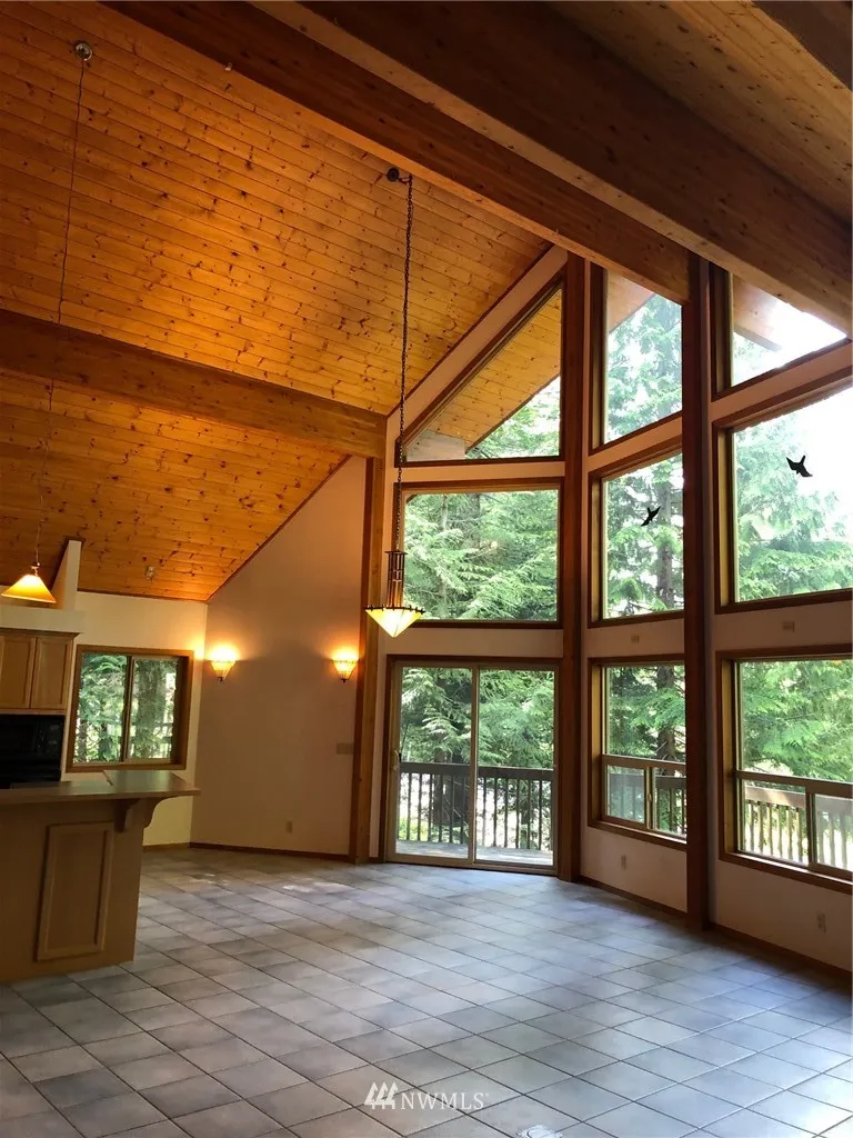 PRICE REDUCED on this Perfectly placed Pan Abode Cedar Home on 2 Forested lots. Beautiful FLOOR TO CEILING WINDOWS and a 2-1/2 car garage, private shop area. A perfect Retreat area nestled at the end of the street. This 3 bedroom 2-1/4 bath home has an OPEN FLOOR PLAN and a STUNNING Full Wall built in book case /shelf, Vaulted ceiling and Beautiful wood accents throughout, Master in loft has 3/4 bath with double shower heads. Radiant floor heating and Heated driveway. A Snow Lovers Dream !!