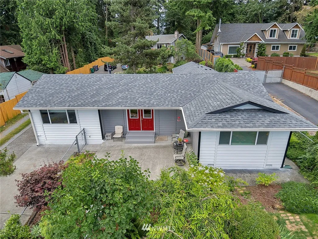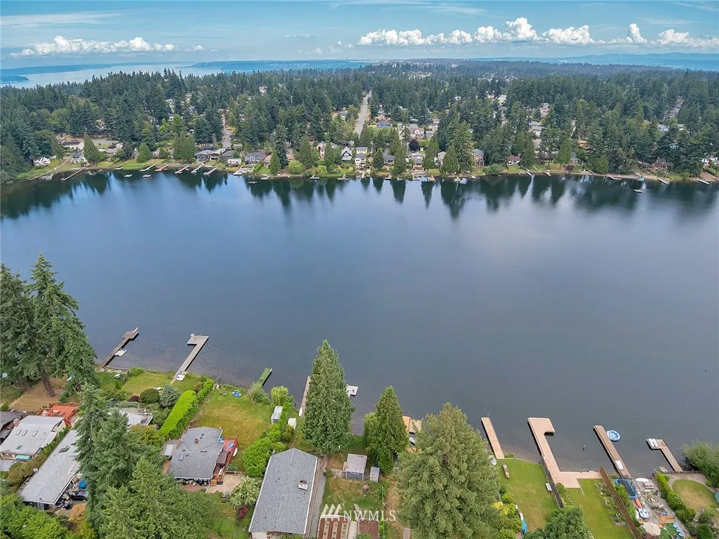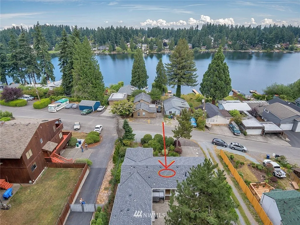 Priced below market: Lovely 4 bed/2 full bath Arts & Crafts rambler. Directly across from Steel Lake w awesome view & just steps to one of the best parks around w lifeguards, beach, swimming, kid play area, kayak launch & private trails at end of cul-de-sac. New roof 2018, windows, french doors+more. Enjoy lake view from front patio + large back patio w beautiful lndscpng & water feature, sec ssys & bonus 390 sf in basmt (movie room?). Great Airbnb potential...good investment home! Bring offers!