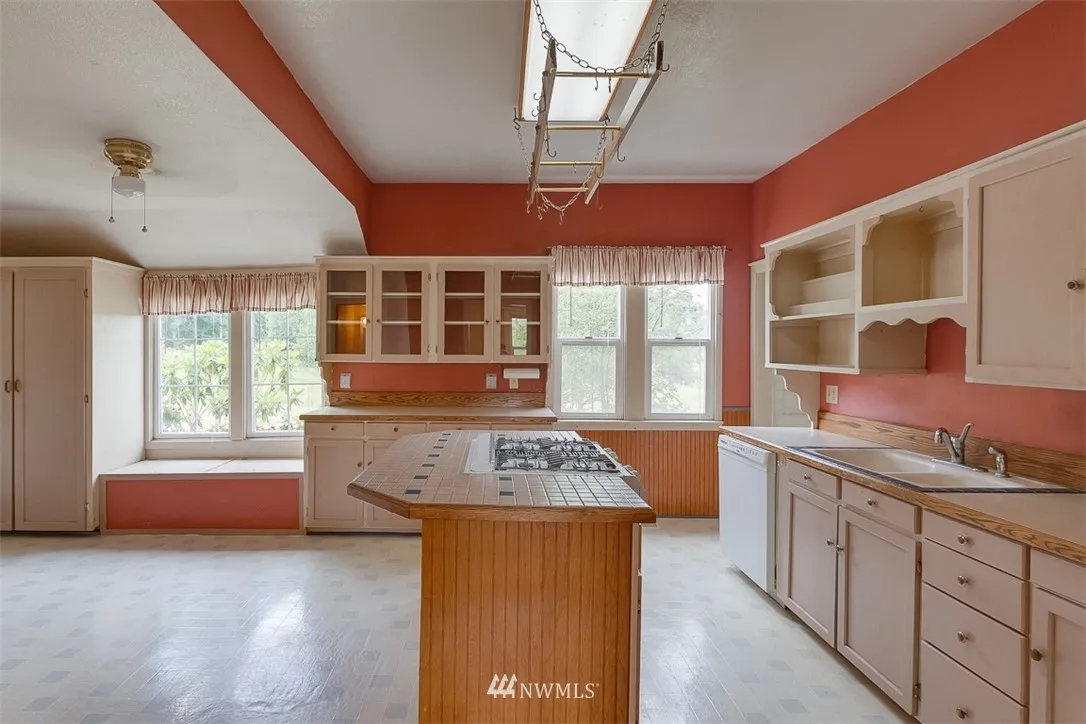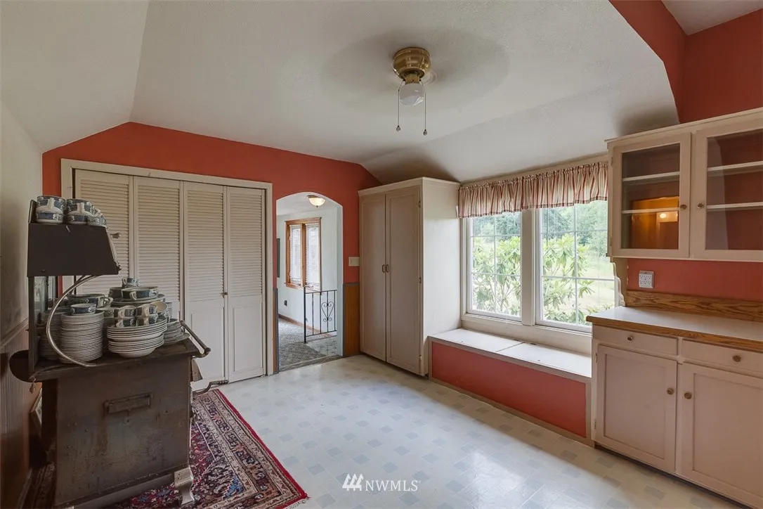 Charming 1920 farm house on a very usable half acre. Located on the main floor, the master bedroom has original hardwood under the carpet. The two other bedrooms are upstairs. Spacious kitchen has an island with a downdraft gas range, lot's of nice cabinets & a walk-in pantry. It has thick beautiful millwork throughout including baseboards, window & door wraps, and wainscoting. Hardwood under carpet in living & dining. Natural gas forced air furnace & freestanding stove. Newer roof & windows.