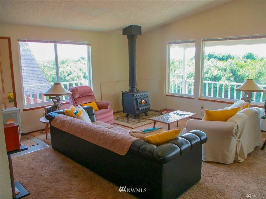 Ocean Shores~Ocean Front Home; tucked away in private setting~Turn Key Treasure! Private Walking path to BEACH & peek a boo View of the Ocean. GO clamming, kite flying, beach combing ~ PEACEFUL! Minutes to Shopping, Dining & Entertainment! 2 Fresh Water Lakes go fishing & boating. 3 bedrooms & a DEN! 2 baths. Single Car Garage attached! New Windows; Dishwasher, Fridge, Stove, Microwave. Open concept; w/large bright windows. 1K carpet credit @ close! Toasty wood stove~Wrap around deck for a BBQ!