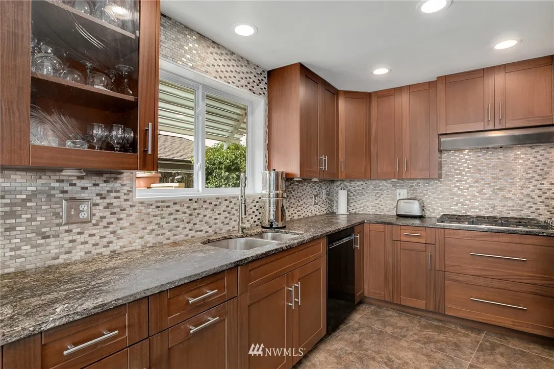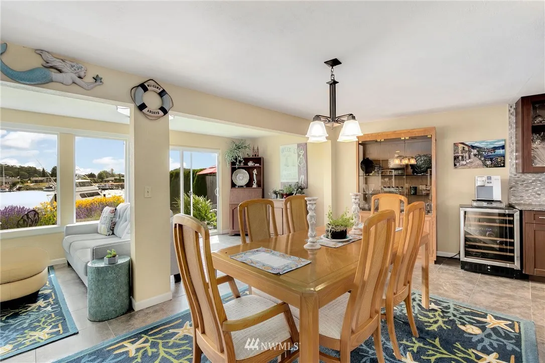 Immaculate waterfront rambler w/45' shared dock & picturesque views of the bay, Rainbow Bridge & Mt. Baker! Light & bright w/large windows & open floor plan. Chef's kitchen w/granite counter, tile backsplash, 5 burner gas cooktop, double oven, quality cabinetry & abundant storage/work space. King sized master w/5 piece BA. Delightful yard w/low maintenance landscaping & large patio. Central vac, new furnace & A/C. Community amenities include pool, tennis, golf, club house, picnic area & beaches.