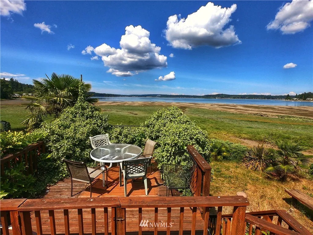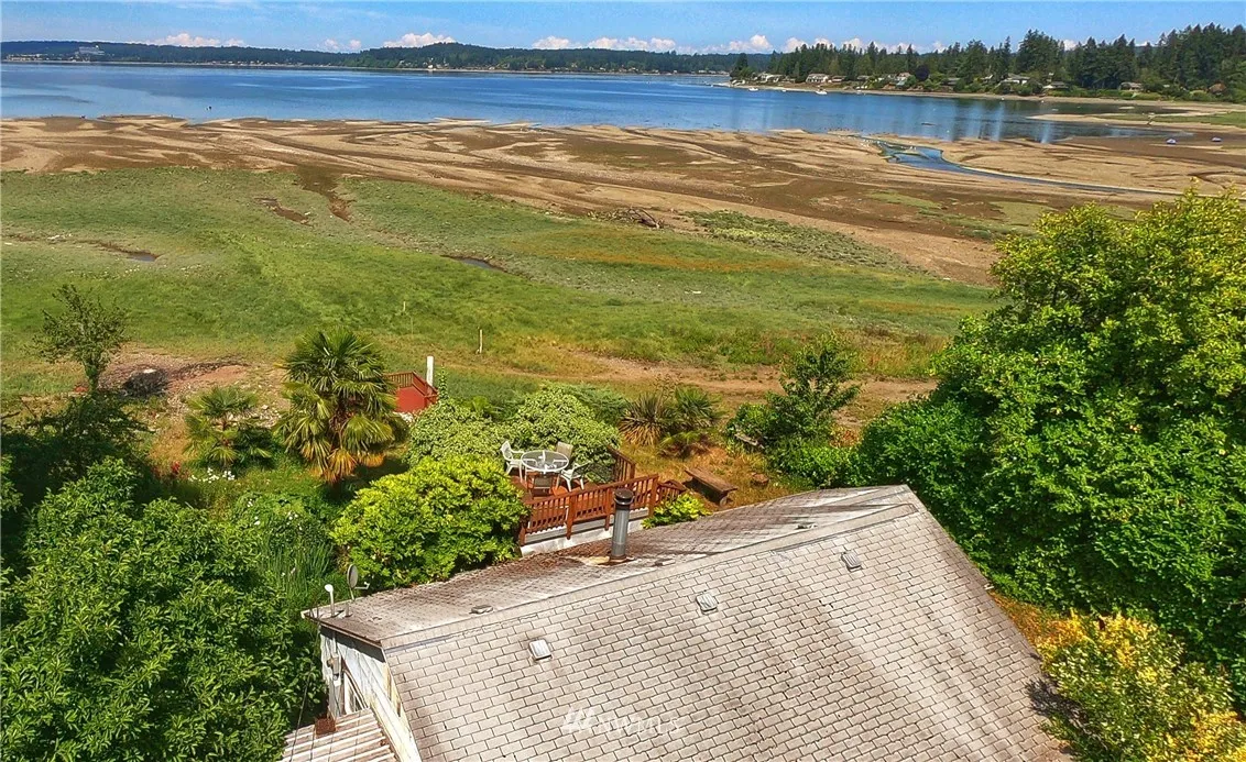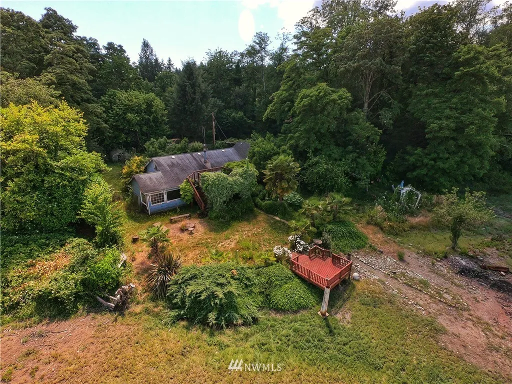 Gorgeous home off Dyes Inlet. Land all to yourself. Home w/2 bdrm/1 bath, garage/shop w/W&D hookups. Strong bones, great for Remodel. Or Renovate and expand. Lush landscaping w/date palms & fish pond. Organic orchard & garden w/greenhouse. An absolute piece of heaven right on waterfront across from Silverdale, shopping, restaurants, & new hospital. Estuary on one side & a viable salmon stream on the other. Revel in the view and enjoy watching the wildlife from the upper deck & windows!