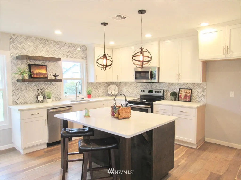 FULLY REMODELED 4 bed 1 3/4 bath home on over an acre lot, with detached 2 car garage/shop, right in town! This home features an open concept kitchen with center island, quartz countertops, and new stainless appliances, great floor plan with master bed. on the main, featuring generous walk in closet and bath with custom tile shower and vessel sinks. All the work has been done.. so many possibilities for the buyer looking for a little property!