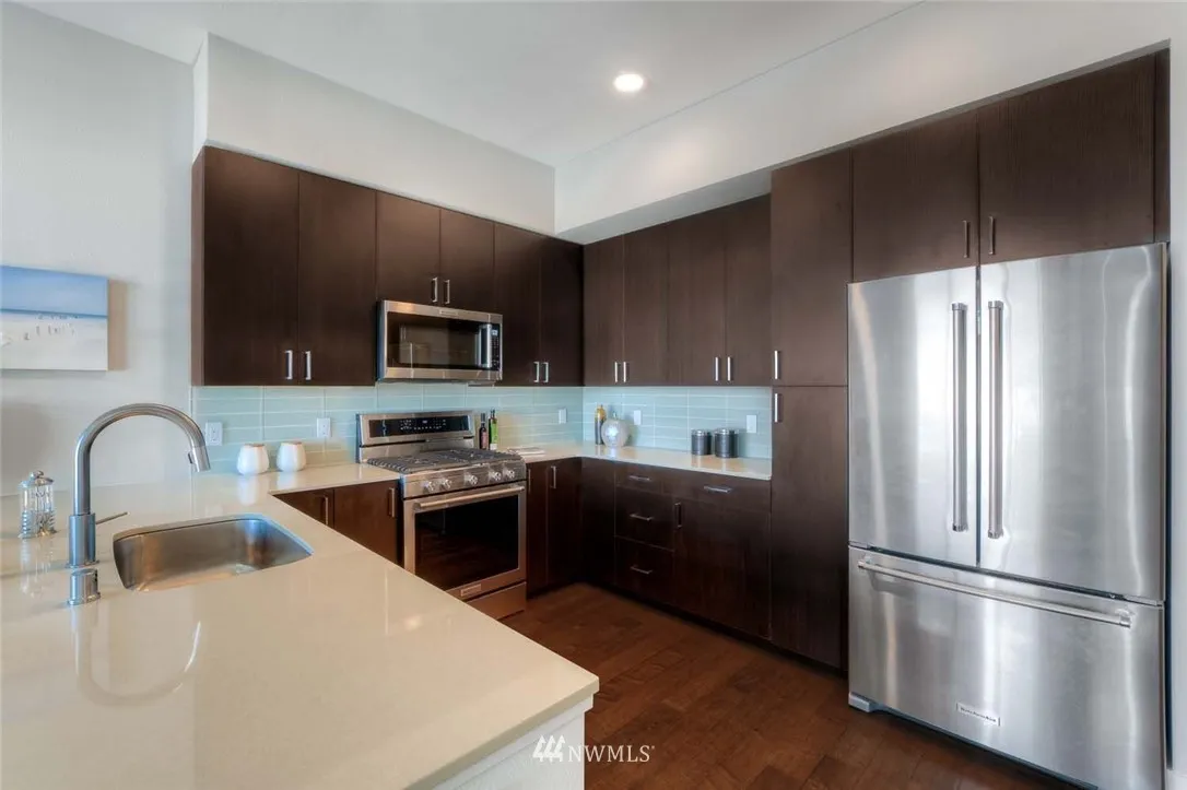 Welcome to 50 Pine Street! Edmonds new condominium community offering 68 designer floor plans to choose from! Showcasing stunning views of Puget Sound, Mt. Baker and Edmonds Marina. This darling one bedroom home is light and bright! Highlights: wide plank hardwood flooring and high ceilings, beautiful chefs kitchen w/quartz counters and ss appliance package. Come for the view and stay for the lifestyle!