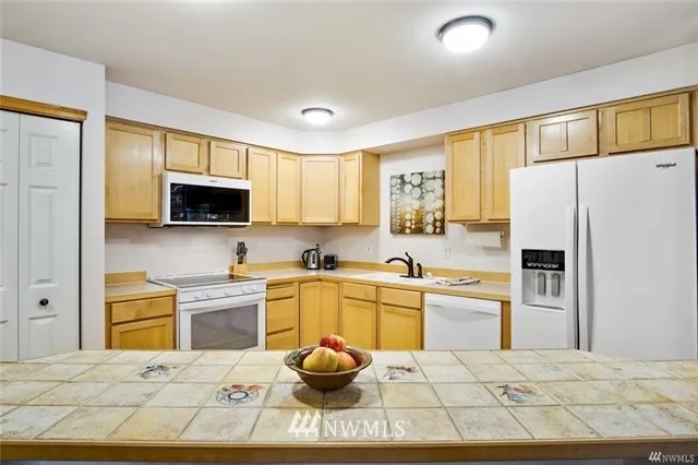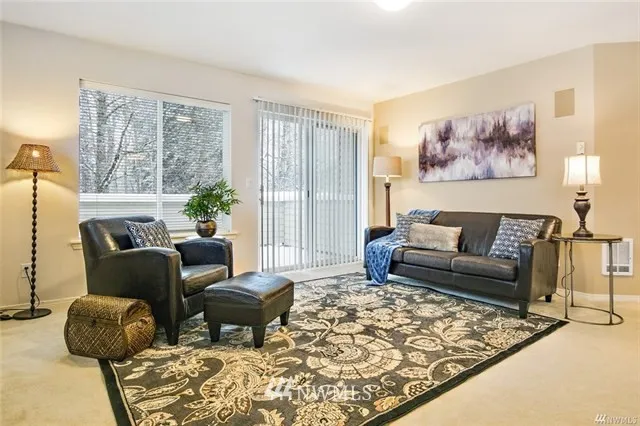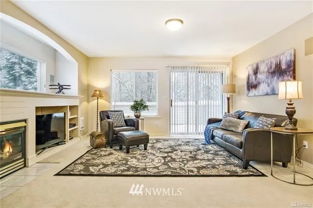 Fabulous 3 bedroom, 2 bath one level home with a peaceful woodland view in Nature's Walk. This home features an open concept great rm, dining room, kitchen and a slider to the large deck. Spacious island & pantry in the kitchen. Master w/ vaulted ceilings & private bath. Great end unit offers privacy & easy access to community trails. Oversized 2 car garage with plenty of storage & beautiful coated floors. Sports court, walking trails & close to Town Center! One Year Home Warranty Included!