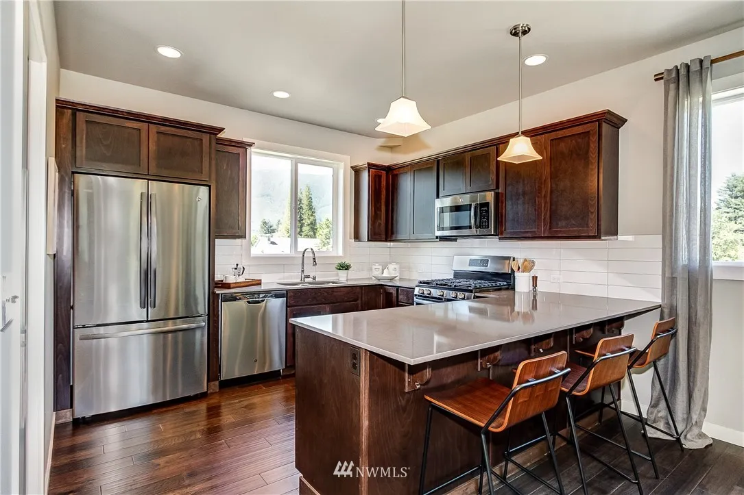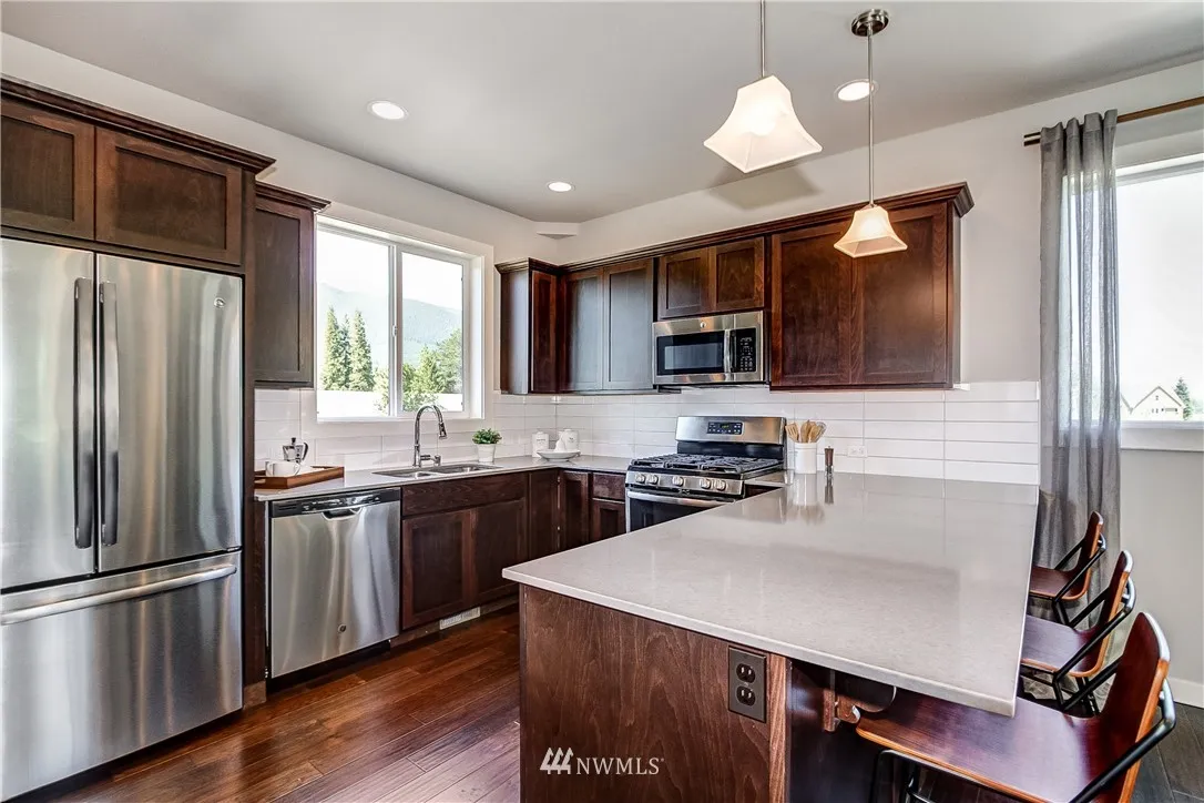 Move in Ready! The Nest floorplan features 3 bedrooms, 2.25 baths w/ quality finishes including stainless steel appliances, slab quartz countertops & hardwood floors plus a detached 2 car garage. Cozy partially fenced backyard. Homesite has seasonal views of Mt. Si. Close to schools, shopping, parks & outdoor activities including the Snoqualmie Valley Trail. Walk to downtown. Use I-90 for easy commute to Seattle & Eastside. Photos for illustrations purposes only.