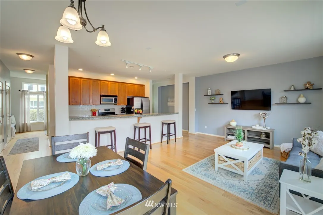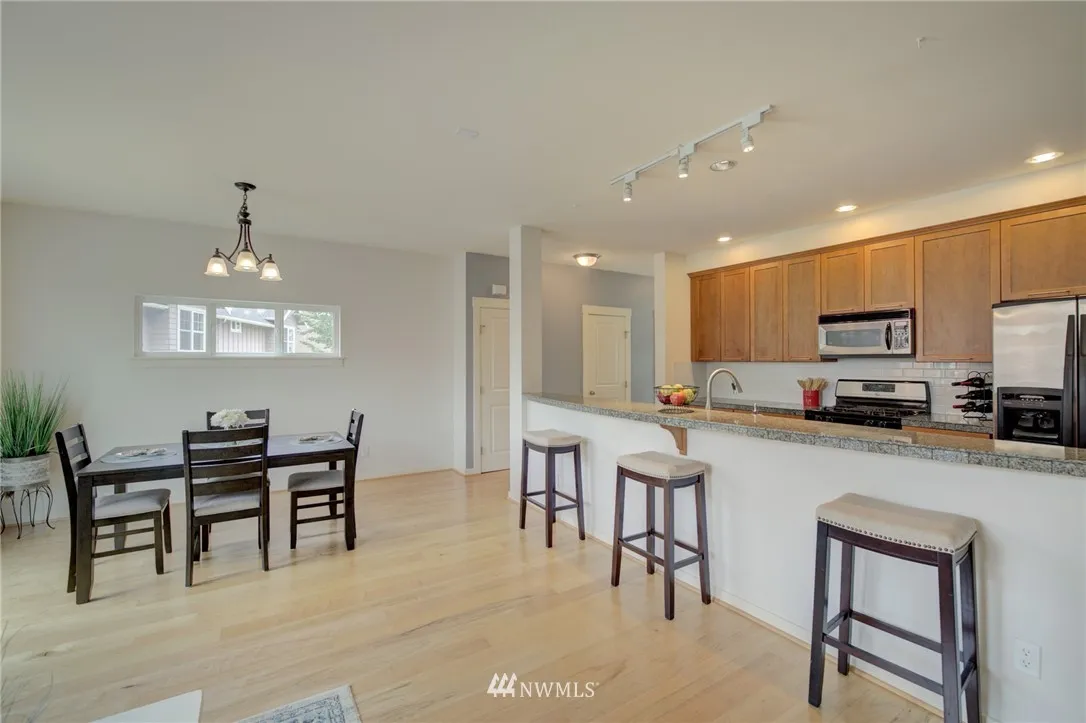 $5,000 buyer credit for offer received by 9/24. Perfect highlands location, situated on a quiet street. A/C for hot days! BRAND NEW CARPET upstairs, updated bathroom fixtures. Tankless water heater. Substantial two car garage. Vaulted ceilings, light-filled open concept floor plan w/ large kitchen and bar top. Large outdoor deck great for BBQ. Top rated schools. Walk to restaurants, coffee shops, and movies. I-90 minutes away. HOA Covers garbage/recycling, exterior of home, landscaping, parks.