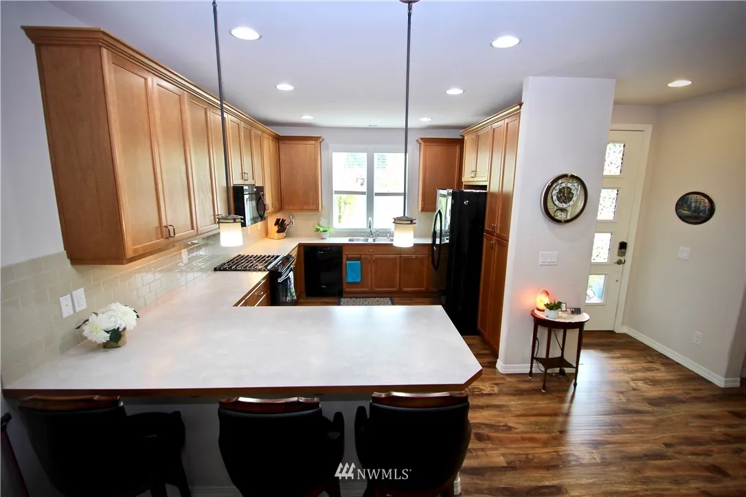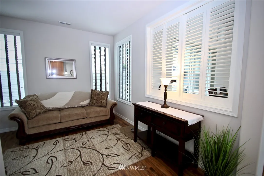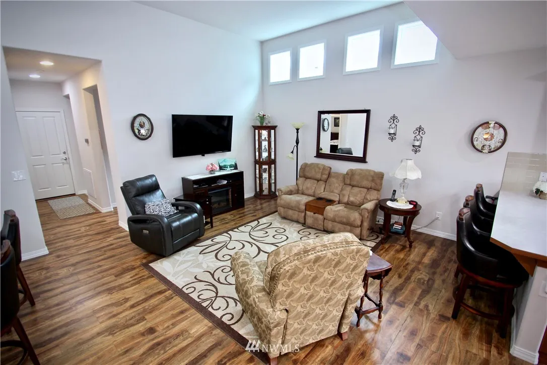This open and bright floor plan offers 2 bedroom and 1.75 bathrooms with 1,426 square feet of living space. Office with built in cabinetry, master with 4 piece ensuite and walk in closet. Private covered outdoor patio with mature landscaping. Over sized 2 car garage with alley access. Efficient heat pump offers AC and lower heating bills. All this in Trilogy 55+ community and within walking distance of the Sevens Summits Lodge w/ Restaurant/bar, fitness center, pool/spa and Pickle ball courts