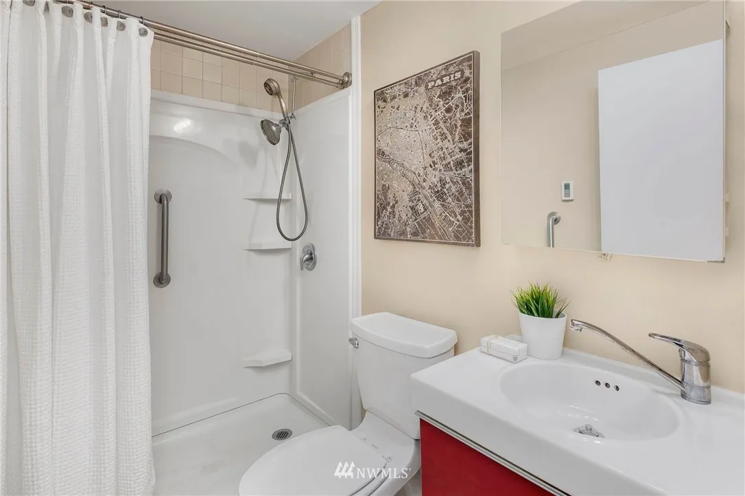 Imagine vacation living 365 days in this updated top floor unit with breathtaking views of the lake & mountains. Just a short stroll to the Redwing Cafe for your morning coffee, breakfast, lunch & dinner at The Stonehouse Cafe or a great meal at Pizzeria Pulcinella. New carpet, fresh paint, updated kitchen & 3/4 bathroom w/easy access walk in shower, hook ups for washer/dryer, on site caretaker. Easy access to I-5, Renton, public transportation, Light Rail & a 1/2 mile to Safeway and City Park.