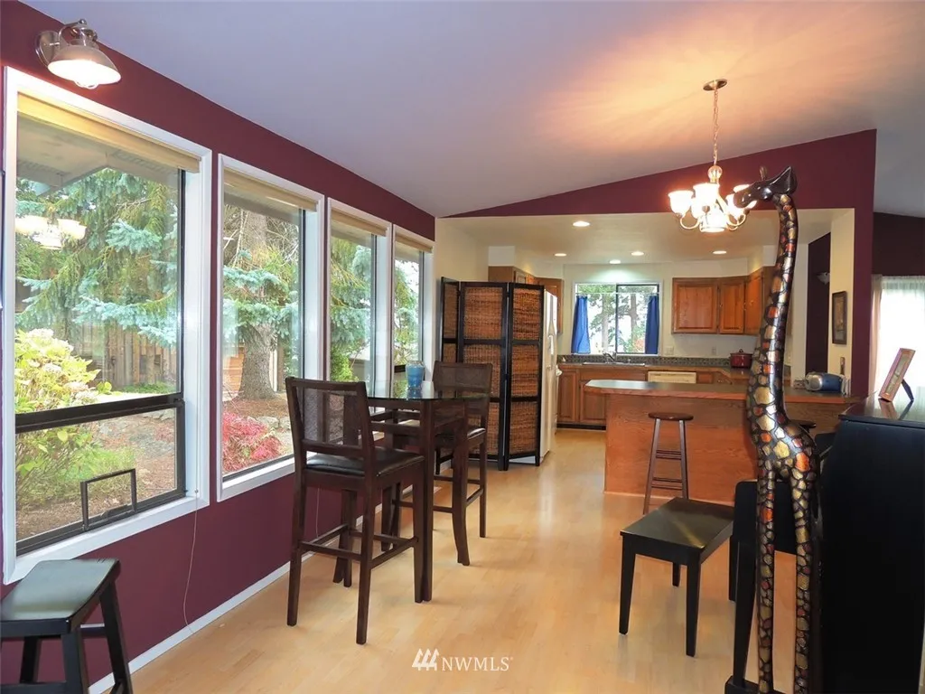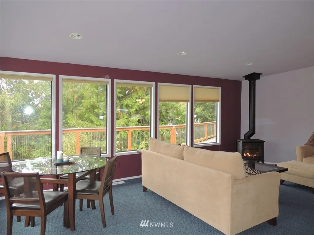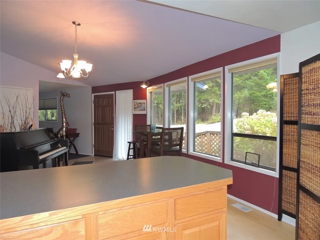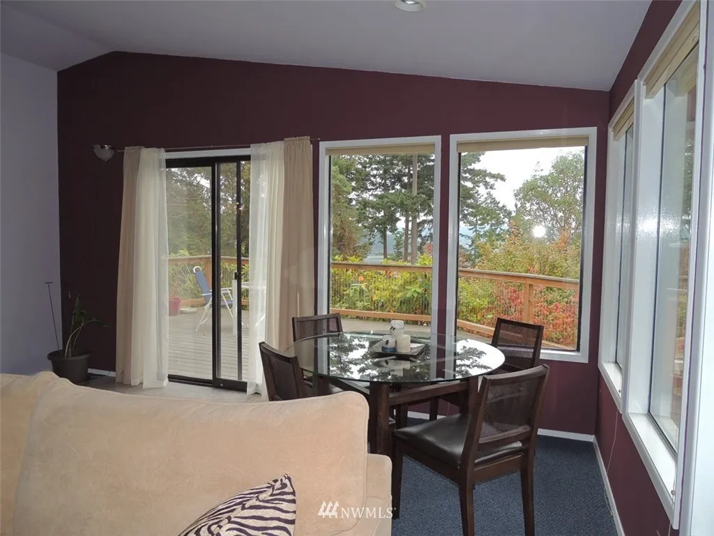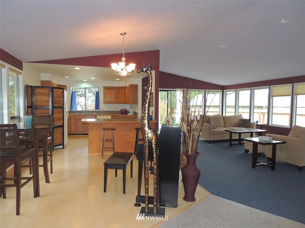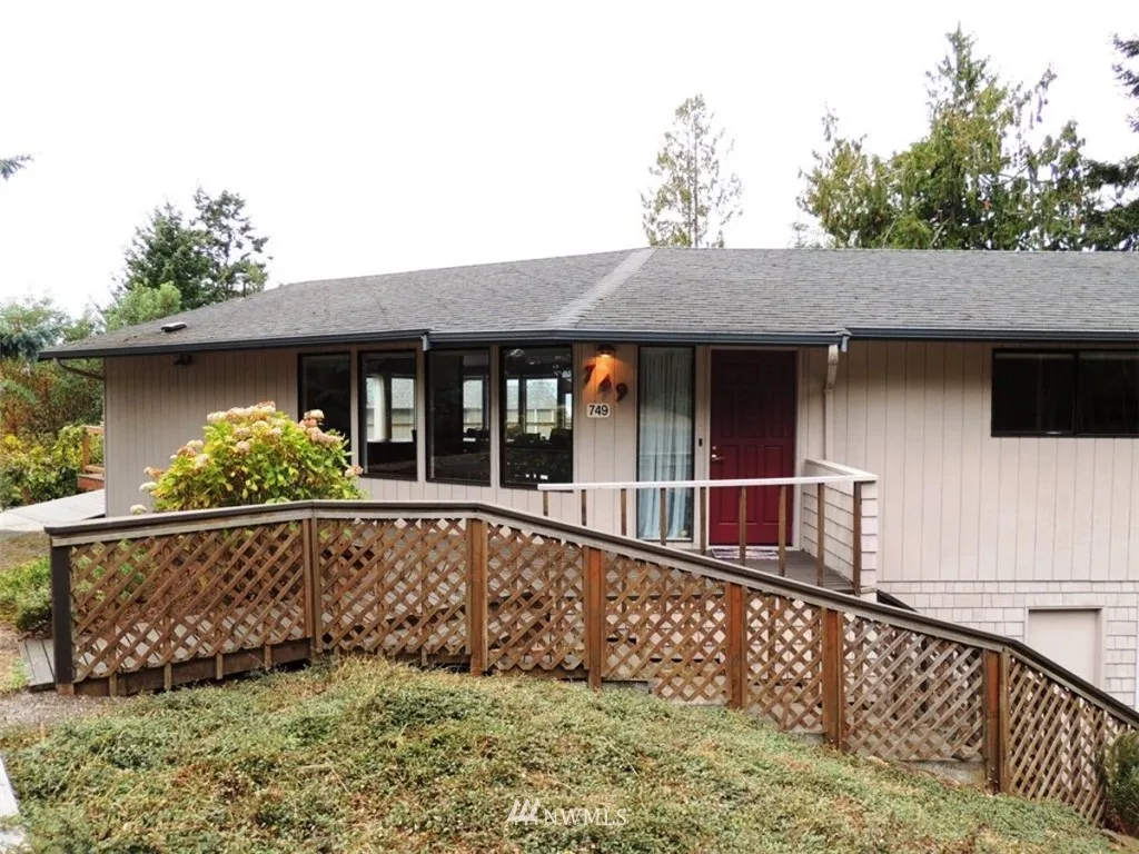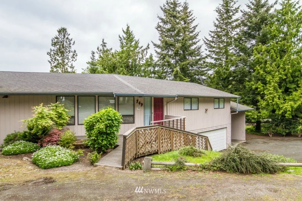 Single level home with spacious deck & some water view. Open floor plan, vaulted ceiling & many windows to bring in light & enjoy the view. Well designed kitchen is open to dining room. Master Bedroom has sliding glass door to wrap around deck. Den/office could be converted to 3rd bedroom. Two car garage plus tall carport for RV or boat (11'4" wide,11'high,28' deep) would also make a great shop. Huge amount of parking. Enjoy community amenities, moorage possible!