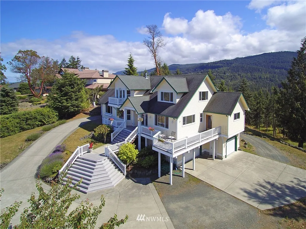 Amazing sunrises & sunsets from this beautiful custom home on Sunset Heights where on a clear day you can see forever! Views of the Strait of Juan De Fuca, Vancouver Island, the San Juan Islands. Elegant 3 BR home with get-lost size closets, 4 BA. Unsurpassed water vistas & the feeling of living in the country, only minutes to town. There are 2 masters - 1 on main floor & 1 on upper. Library/music room with double insulated walls. Office area off kitchen. Propane FP & wood stove insert.
