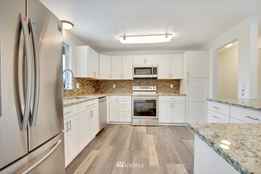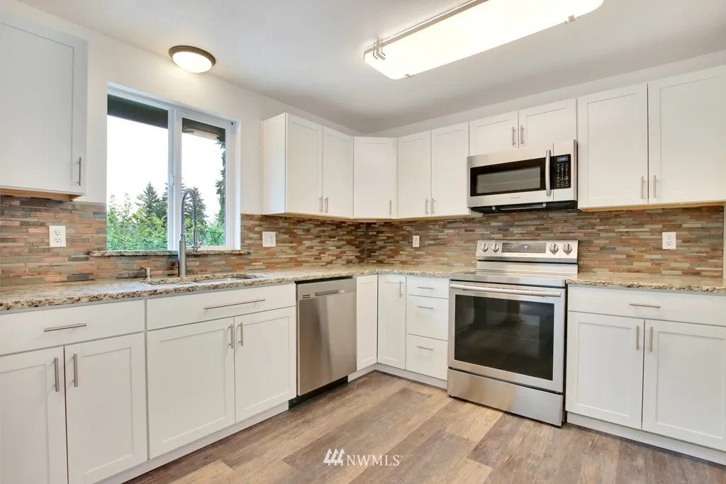Beautifully updated Split-level on a quiet dead end street. Upstairs features a completely updated kitchen with granite counters and stainless steel appliances, eating space and family room. 3 bedrooms including a master and 3/4 bath, full bath with tile and granite throughout. Downstairs features a bonus room and large utility room with 1/2 bath. Brand new large deck for entertaining overlooks great fully fenced yard. Brand new furnace, water heater, heat pump, windows, flooring throughout.
