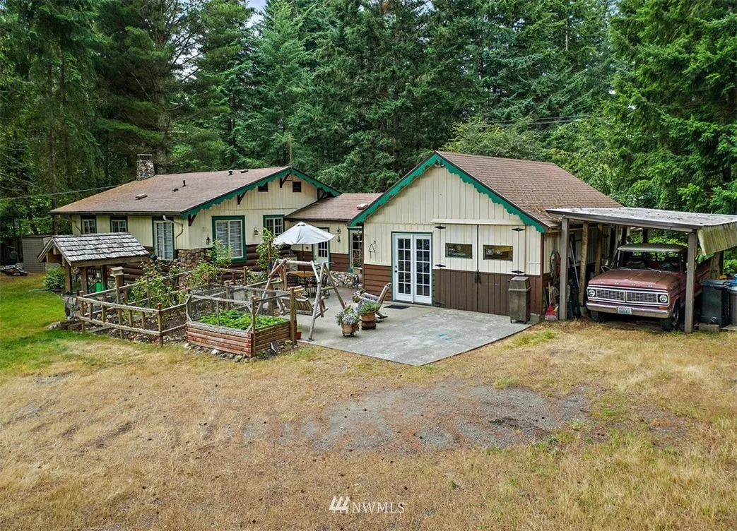 Fully furnished Hobby Farm w/ everything you need to get started. This cute log cabin is tucked away on a lot stretching over 2 acres. Goat pen in front & equestrian area w/ barn behind, plus lots of room, sunlight for gardening. The home itself has 2 beds, 1.5 bath, formal dining & family room. Downstairs is unfinished w/ loads of potential or keep as is for a great shop space. Rv parking, carport, camping area & very close to the both the HWY 16 & Southworth ferry. Call to see it today!