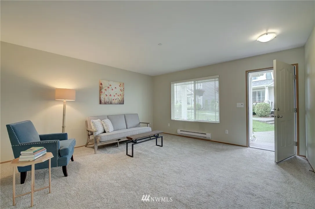 Cottage living in Snoqualmie Ridge close to trails, parks, schools, shopping, restaurants, easy I90/Hwy 18 access. New carpet & paint welcomes you to a spacious front room that flows into a cozy kitchen with eating area, large pantry or storage closet, wood cabinets and slider to outdoor patio. The 3rd bedroom on the main level is great for guests, work or play. A master bedroom with walk-in closet, 2nd bedroom, full bathroom and large laundry closet compliment the upper level.