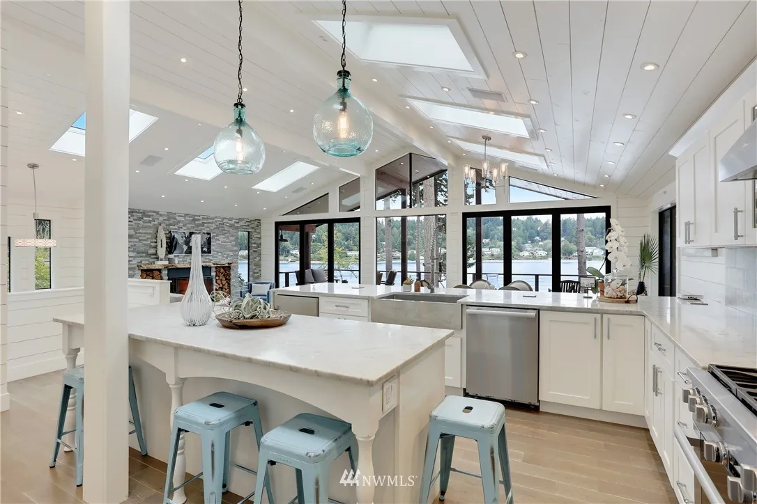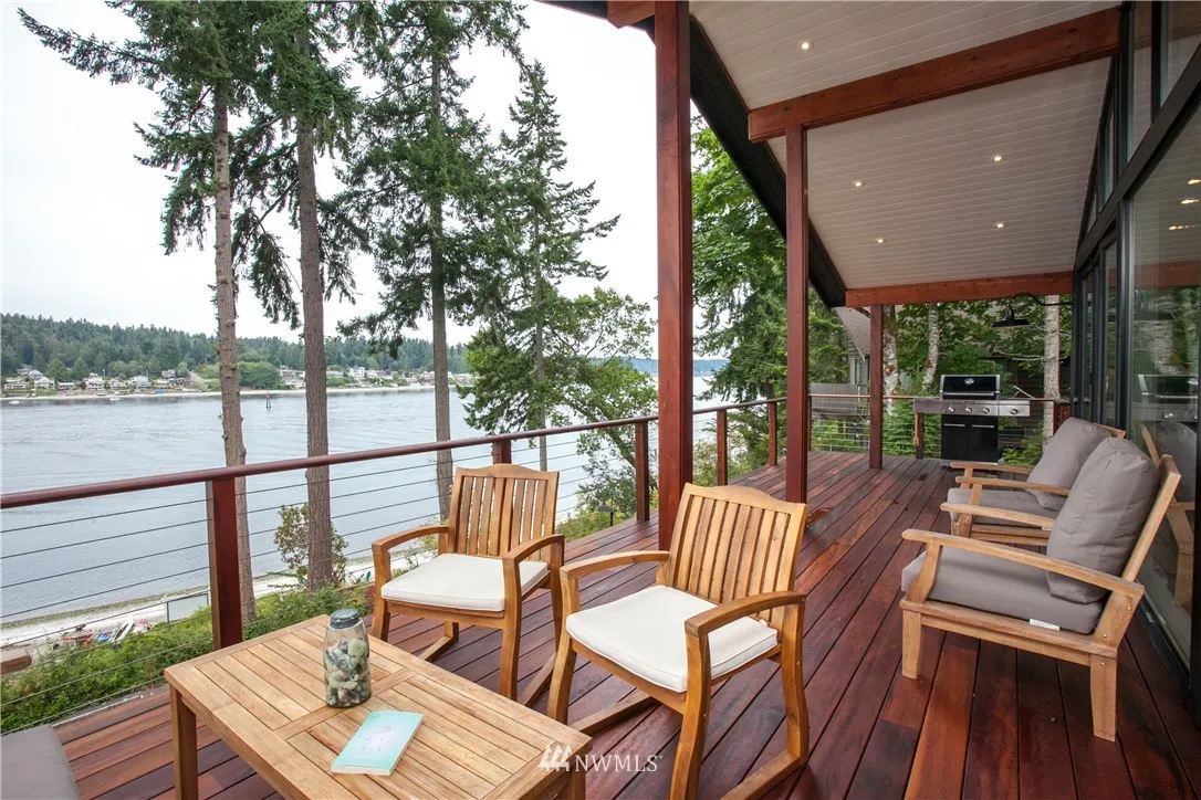 Stunning waterfront home w/ gorgeous sandy beach on Bainbridge Island's Platinum Coast. Sighted on .93 lush acres, this remodeled residence w/separate 500' finished space features open flr plan & expansive water views, chef's dream kitchen w/high end appls & Cararra marble counters, shiplap interior, waterside sliding nano walls, custom lighting, in-house sound system, & exotic hardwood decking/lighted walkways. Harvest oysters, clams & geoducks from your beach. This exceptional home has it all.