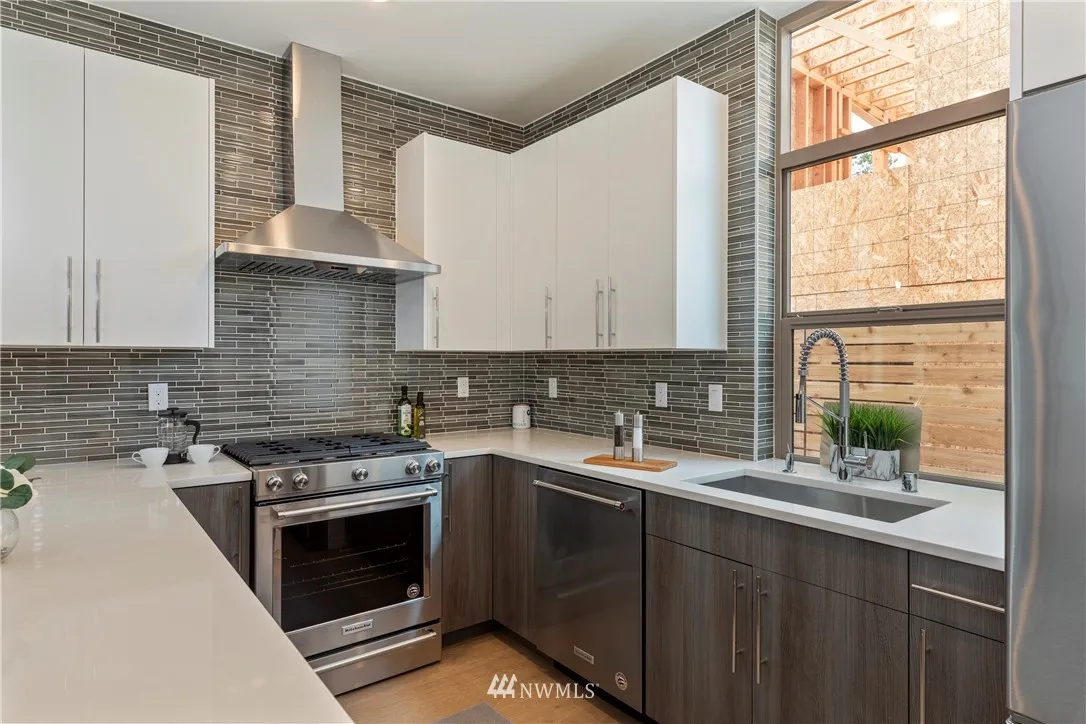 TWO CORNER UNITS LEFT! Corner unit with views of the Sound, Olympics, and DT! More units/different layouts available! Detached new construction. High end finishes throughout this 3 story + rooftop deck w/ gas connection. Equipped w/ A/C minis. Dead end street (no thru-traffic) away from main roads, yet easily accessible to freeways.