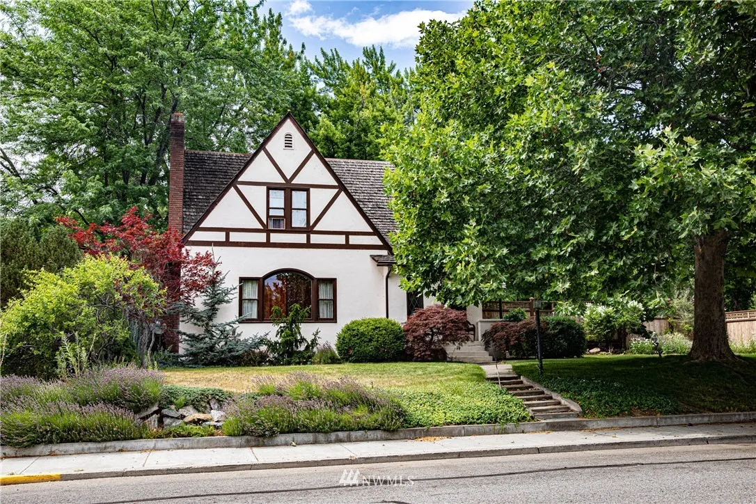 Tudor style with meticulous landscaping. Sits on desirable street, close to schools. Hardwood flooring and wood accents throughout. Dining room with original built-ins, and kitchen with breakfast nook. Master bed with dressing room, built-ins and two closets! Partially finished basement houses laundry room and bonus room. On 2 parcels totaling 0.64 acres with deck and patio plus hot tub. Cement multi-sport court and big backyard. Detached 2 car garage, shed and chicken coop. Original charm.