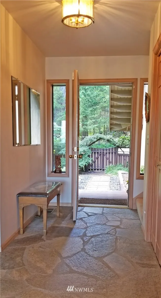 Enjoy privacy & Mt. Baker views from this spacious light-filled home adjacent to 5-acres of greenspace in the quiet Deer Point neighborhood, just a short stroll from a gorgeous community beach. This well-built one-owner home offers 3 bedrms, 3 baths, den/office, 2 basement rooms & storage galore. For plant lovers there's a fenced yard w/established landscaping, greenhouse & potting area, plus a slate-floored solarium that opens to living, dining & family rooms. Home inspection report available.