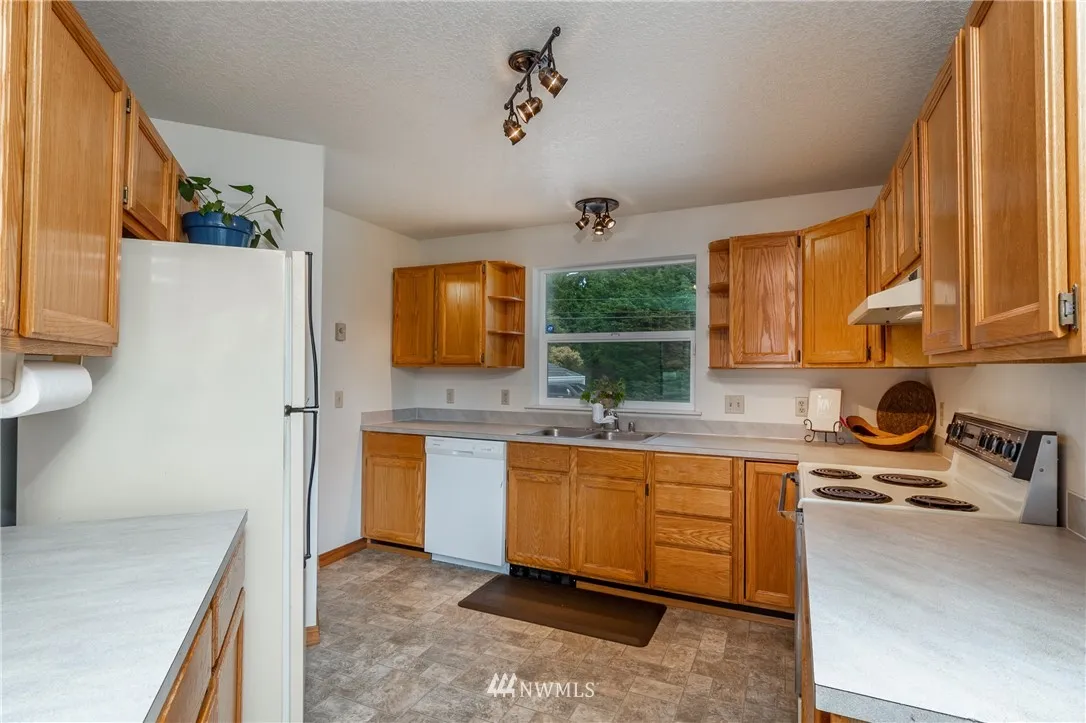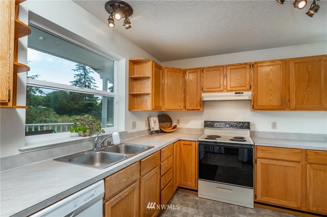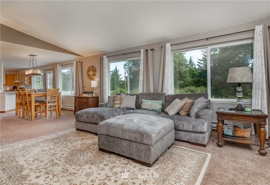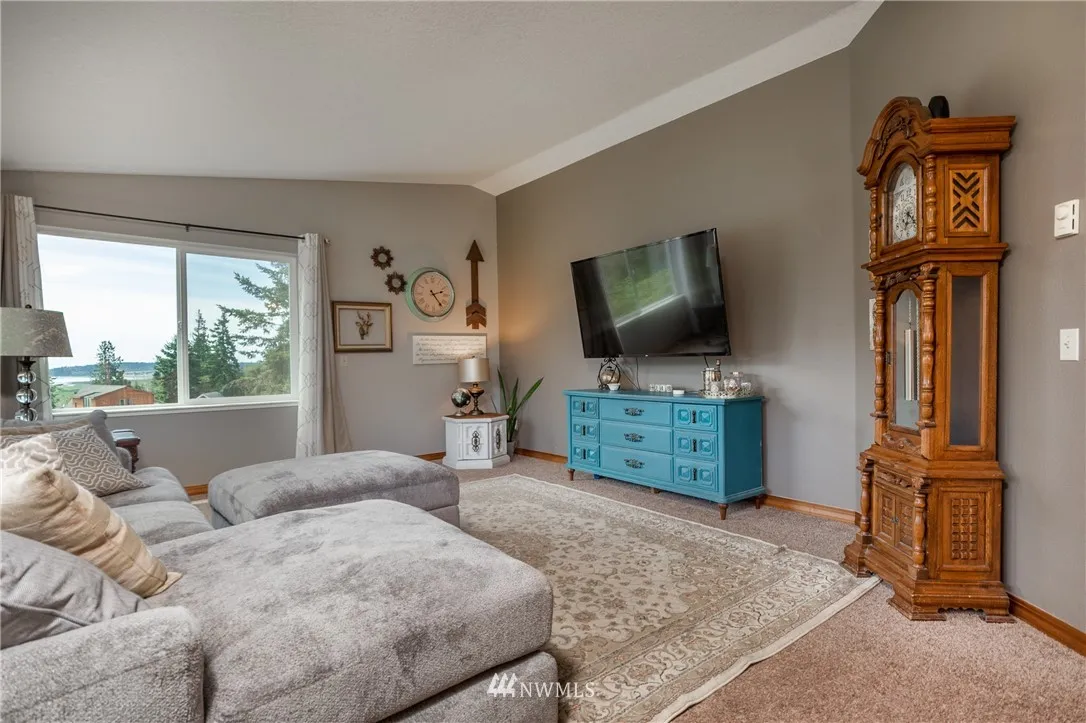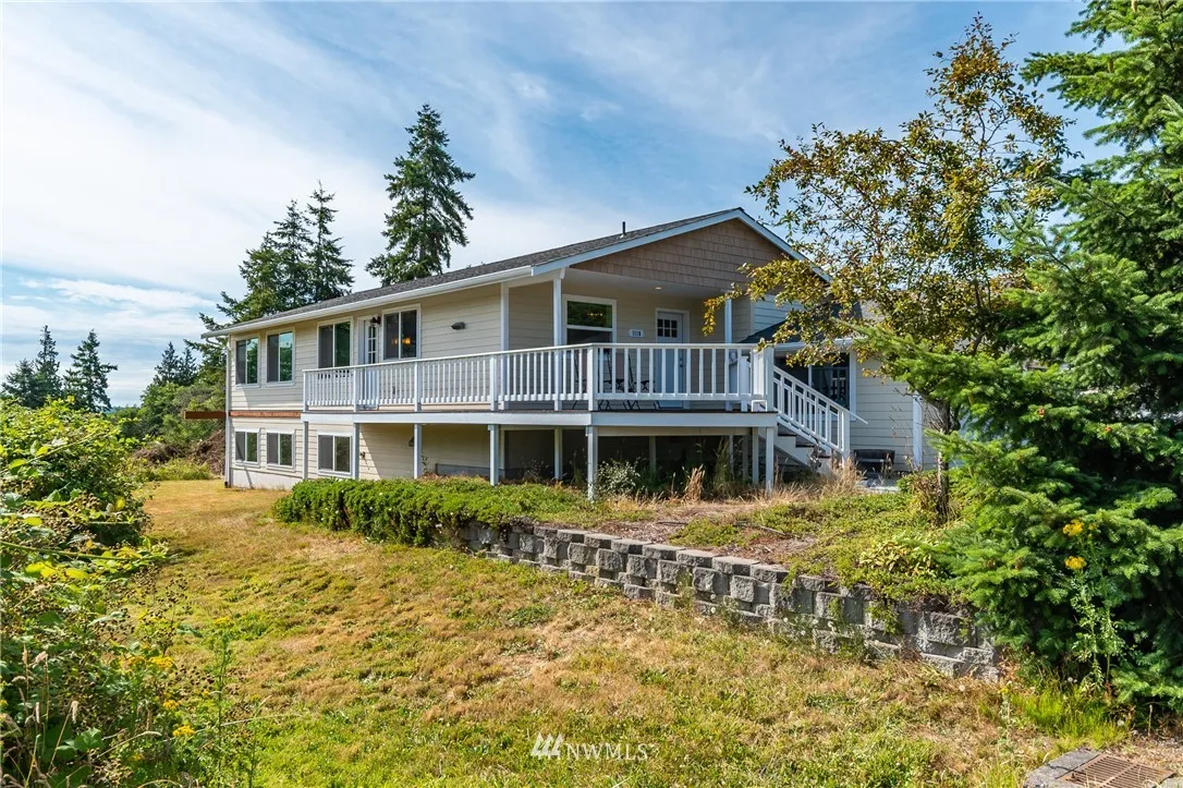 Large picturesque windows look out to Crockett Lk. and Admiralty Bay. 2 bedrooms with an extra room for guests in Admiralty Cove. New vinyl windows, Hardy Plank siding, remodeled bathrooms, and the roof is only 5-years old. The master bedroom has a large walk-in closet off the newly remodeled bathroom. There is a spacious family room downstairs along with a huge shop or rec room that runs the length of the home. Includes 11,490 Sq. Ft. lot next door, enjoy one side of the block all to yourself.