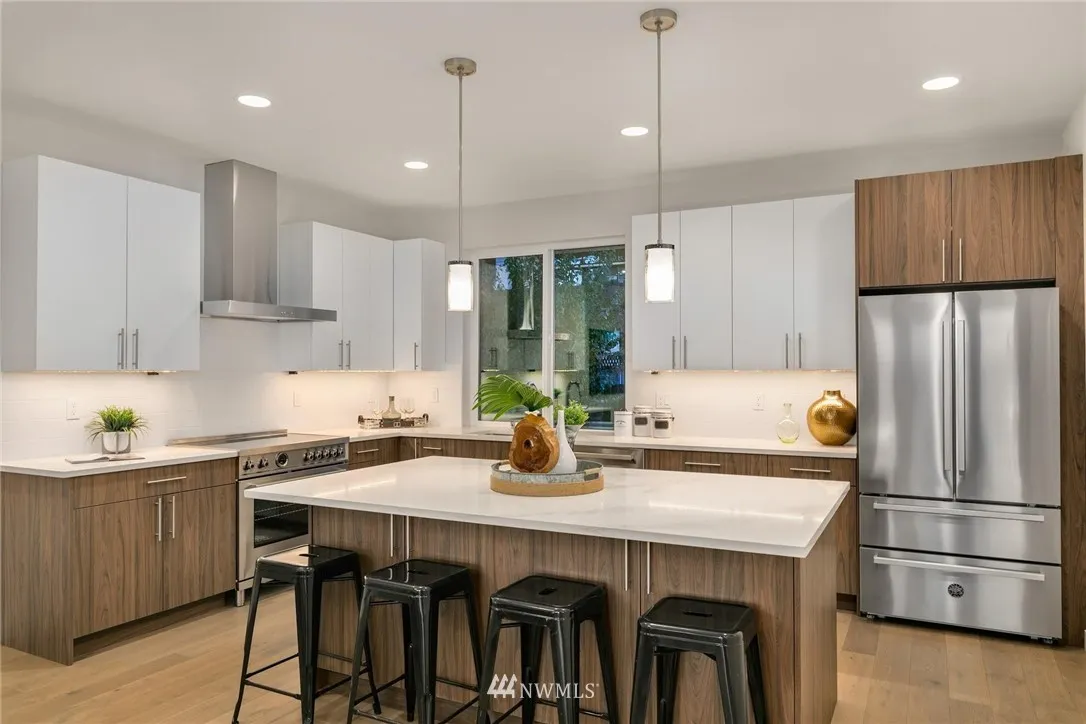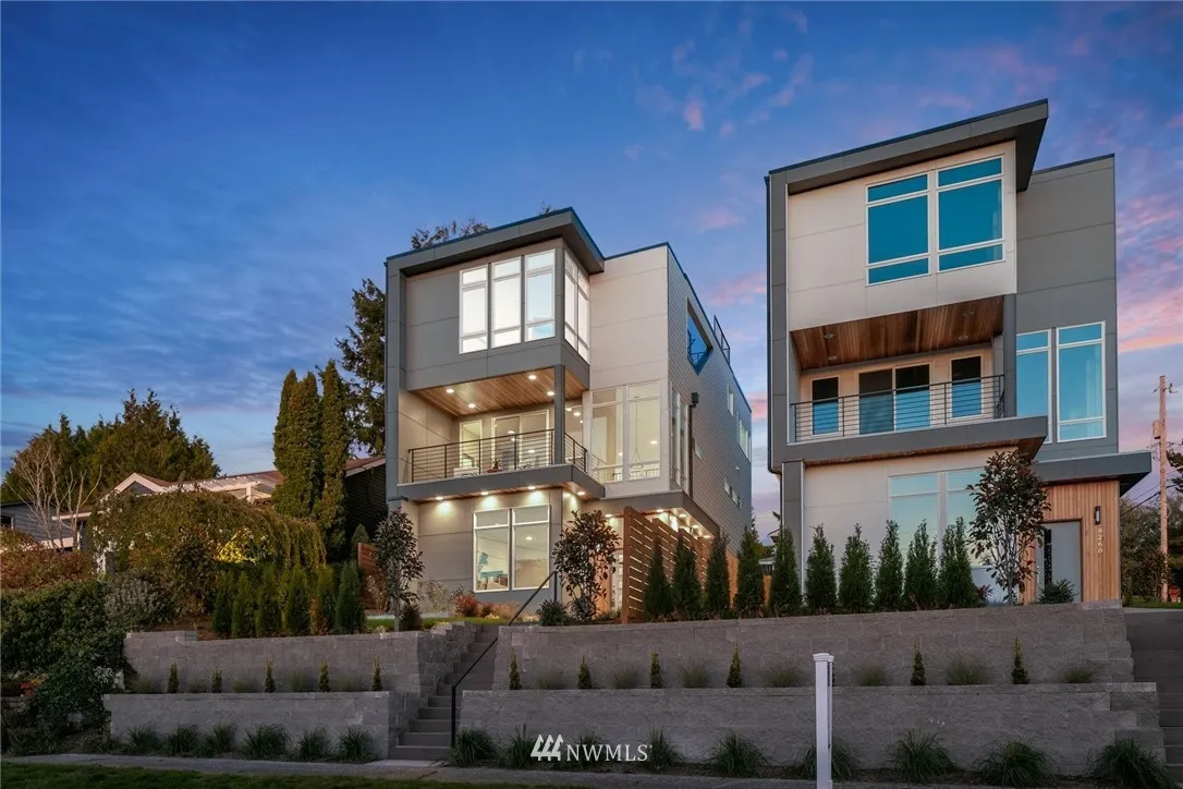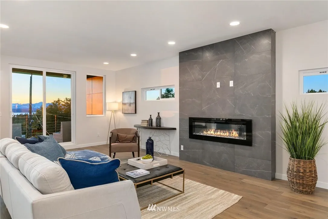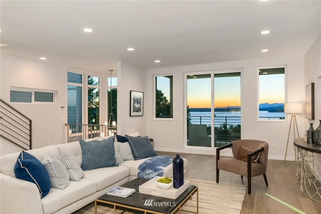 STUNNING panoramic views from ALL levels of this modern new construction residence by JMS Homes. Open main floor living with fabulous kitchen, walk-in pantry, fireplace, powder bath & covered view deck. Light-filled lower level offers a large great room & 3/4 bath. 3rd level includes master suite plus 3 add'l bedrooms, full bath & laundry. UNOBSTRUCTED rooftop deck views! Short walk to shops, restaurants, Ferry & Lincoln Park. Spacious 2-car garage. 3900sf total incl garage & decks.