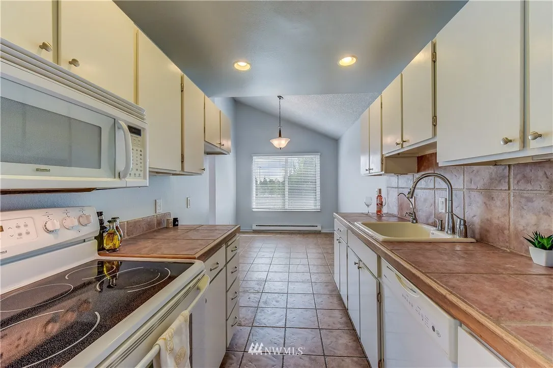 Reduced Price.Edmonds Top floor 2 bed 2 bath condo with lots of natural light,vaulted ceilings and large windows.Freshly painted throughout,master bed with bath.Great open views from the covered balcony with extra large sliding glass door.Laundry in unit.Great location close to shopping and restaurants.Swedish Hospital and downtown Edmonds.Easy access to bus/freeways.Designated parking spot with visitor parking.Storage locker.Small complex with secured entrance.No pet restrictions or Rental Cap.