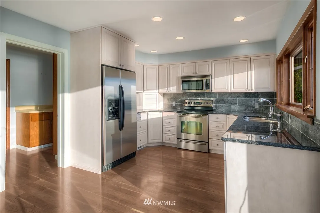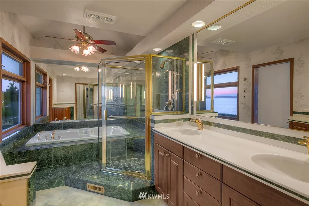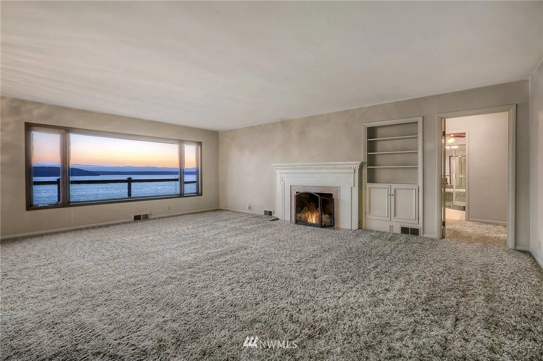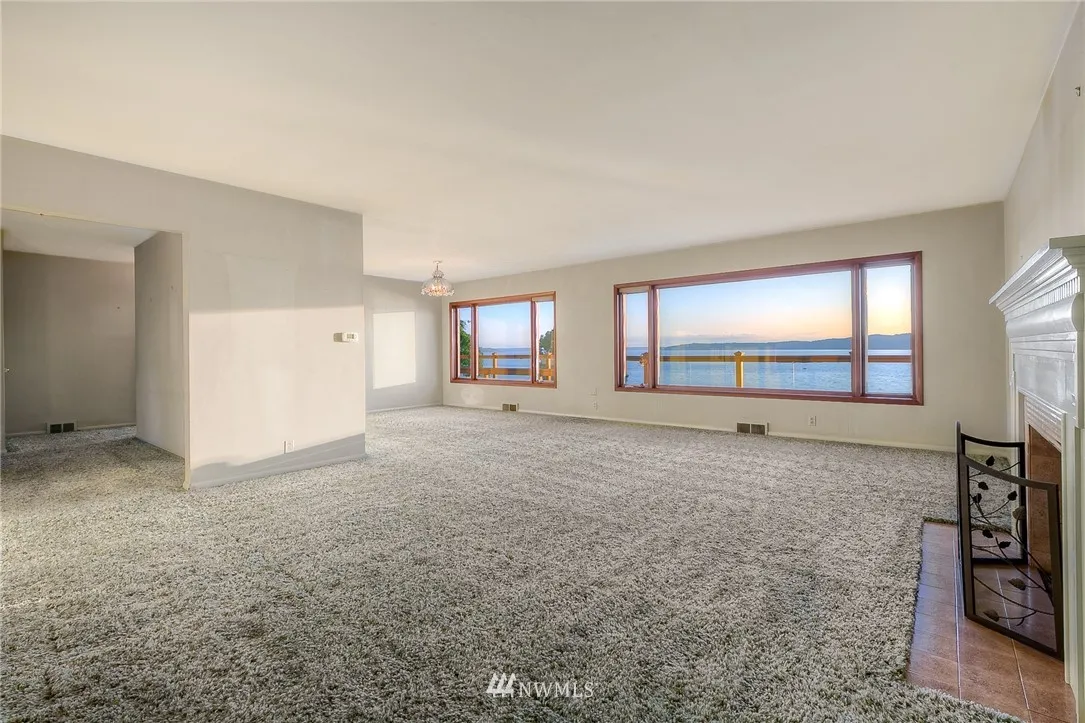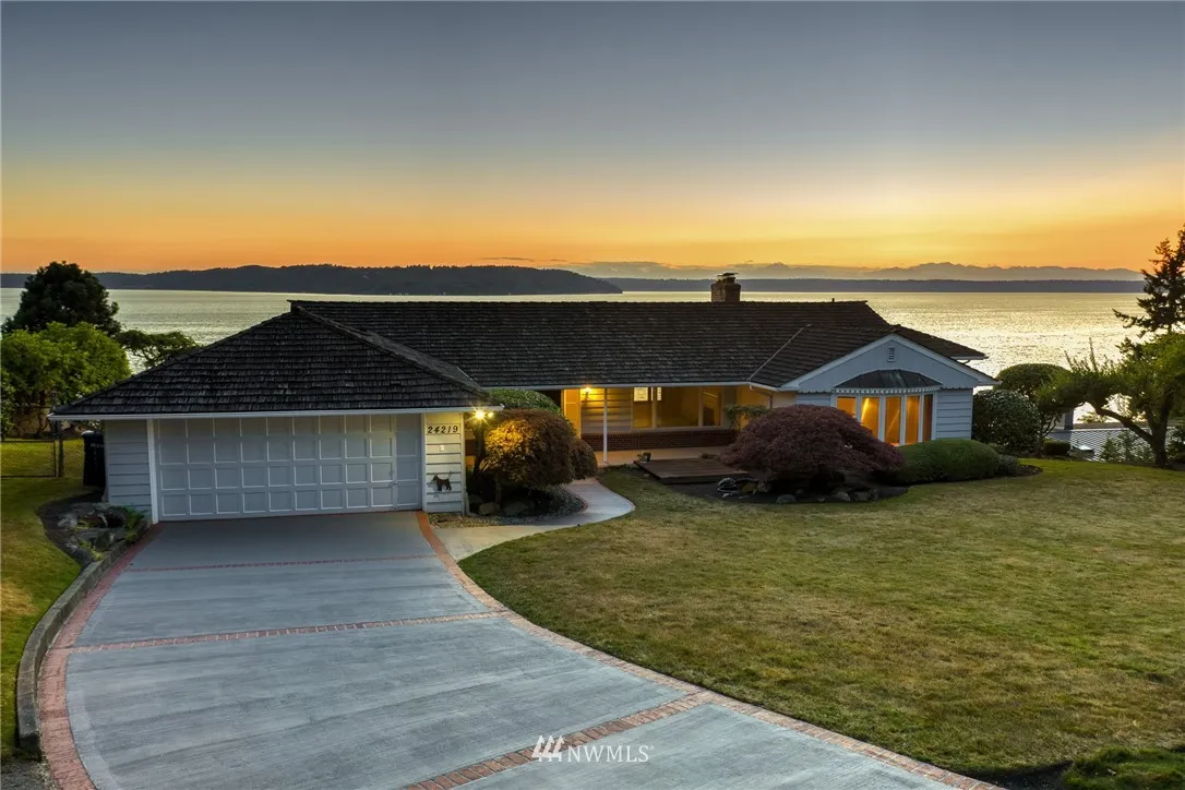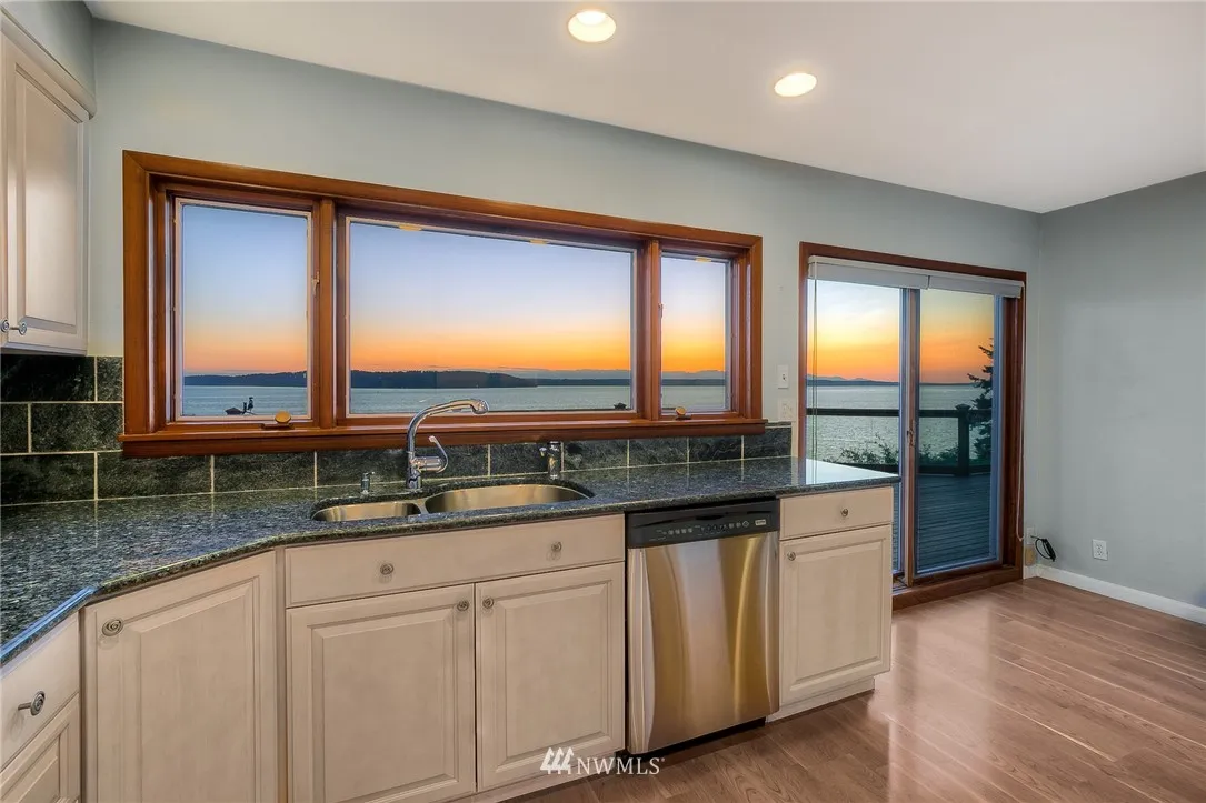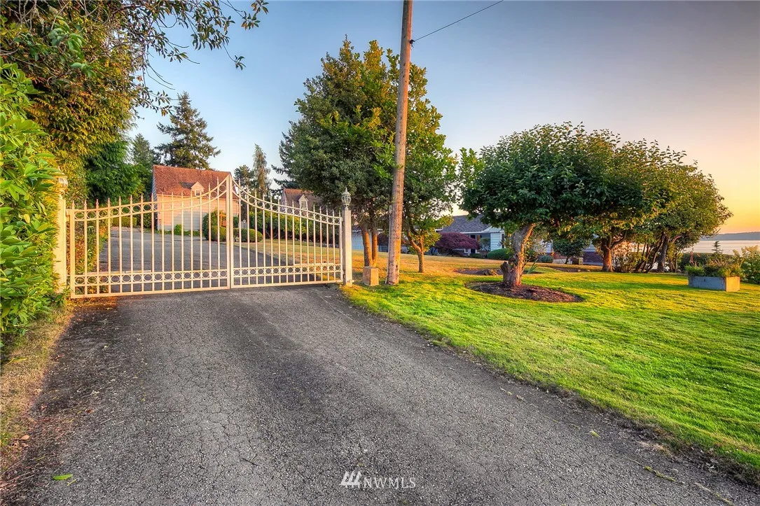 Amazing 1.3 Acre Waterfront Estate w/Spectacular Sweeping Sound & Mountain Views & 115’ of Beach Frontage. Located in a Quiet, Peaceful, Gated Neighborhood. Beautiful 1949 Craftsmanship w/Stellar Views From Every Room on Both Levels. Tastefully Updated Bright Kitchen w/Granite, Slate & SS Appliances. Opens to Spacious Din & Living Rooms w/Fireplc. Master Suite w/Luxurious Bath. Huge Daylight Basement w/2nd Kitchen. Additional 400 Sq Ft Cabin w/Stone Fireplc. Perfect Property for Entertaining!