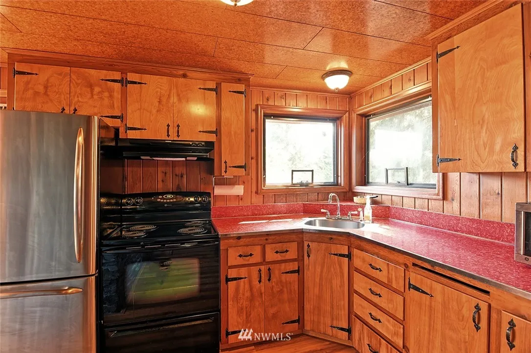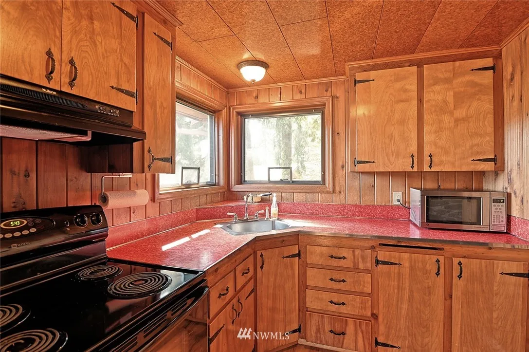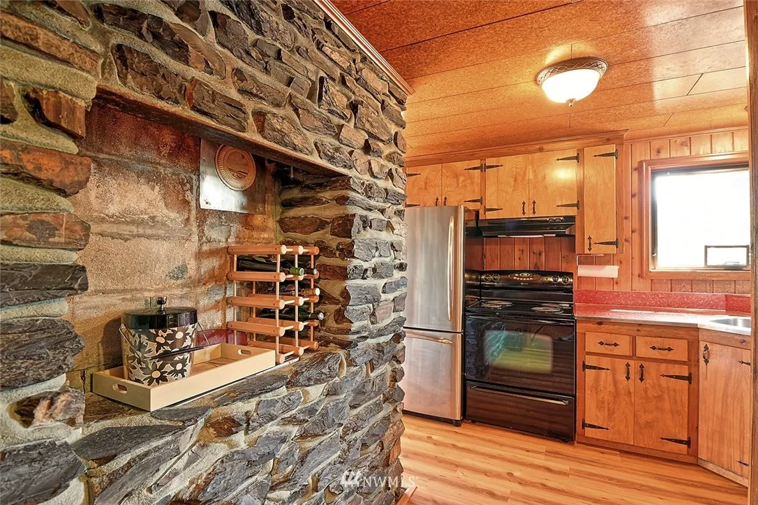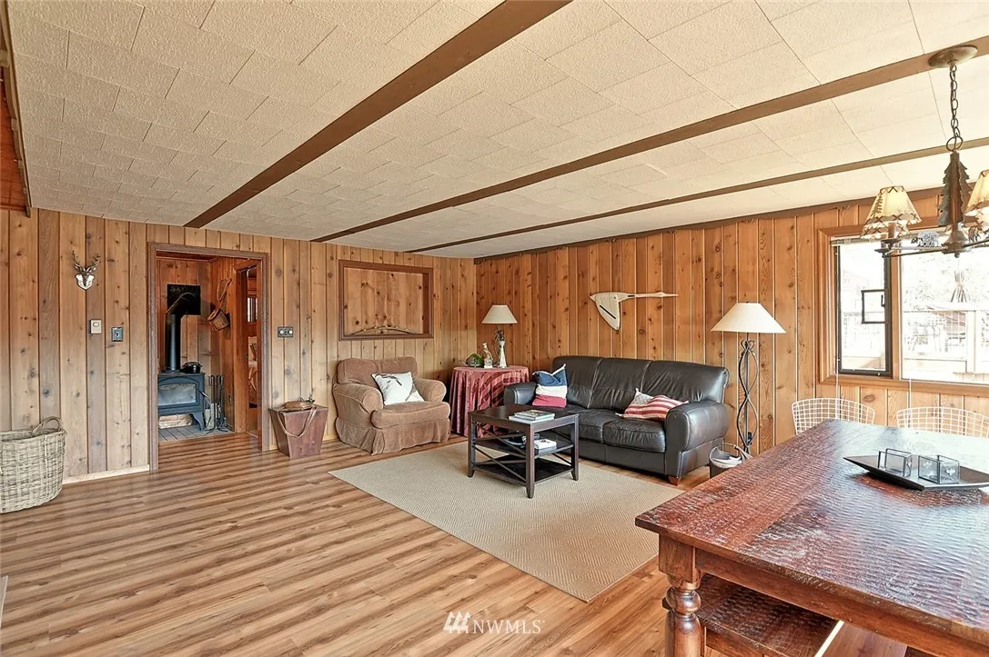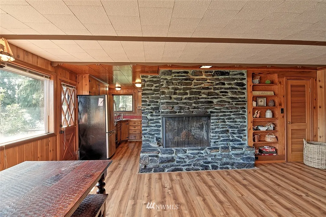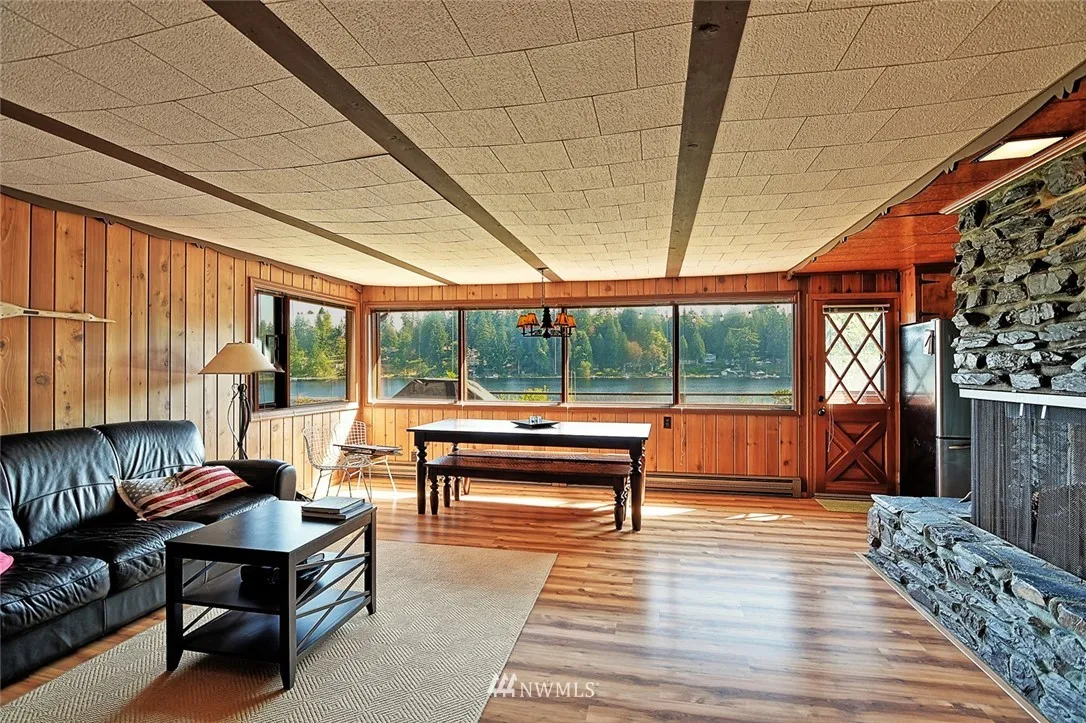 Lake Bosworth beauty!! 2 bed, 1 bath with fantastic water front on Lake Bosworth. This 1957 cabin is perfect for full time living or the weekend get away. Knotty pine walls, rock fireplace (rocks directly from Mt. Pilchuck), huge living room, dining room, built in BBQ in kitchen. Interior has been meticulously cared for and has that great cabin feel. Room for RV parking, quiet neighborhood, fishing, swimming, electric and wood burning stove. Prime waterfront with pile driven dock. Must see