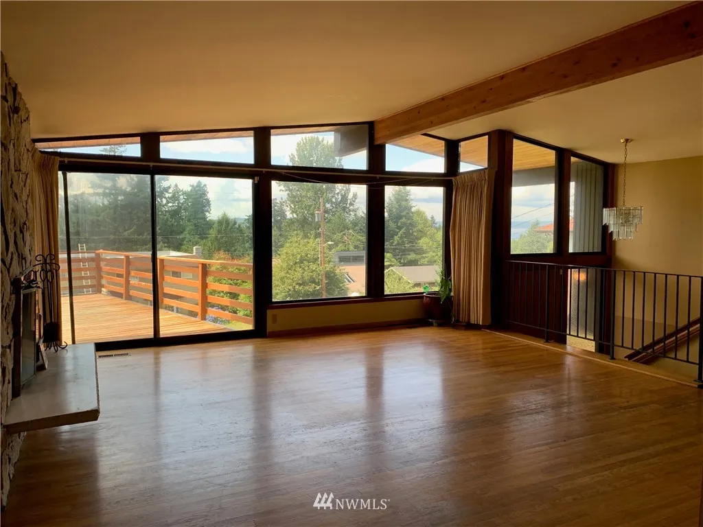PRICED TO SELL! Amazing & spectacular views of the mountains, sound & picturesque sunsets. OVER 2800 SQ FT. 4 bed/2.25 bath.Vaulted ceilings, original hardwoods, master with bath, 2 fplcs, living & family room, extra bonus/shop area, hot tub. RARE top of the line Port of Seattle Premium Sound Proof Aluminum windows with airflow system. So quiet, you can hear a pin drop! Private cul-de sac. A great home with solid bones. First time on the market in 28 years! Sold in it's AS-IS condition.