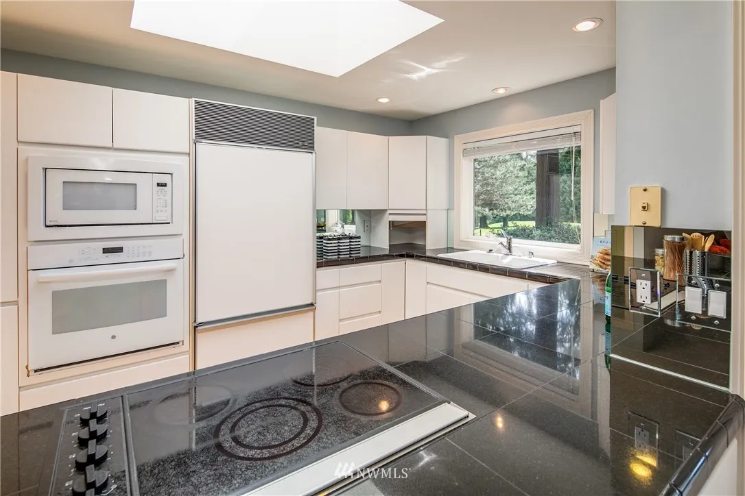 This classic Semiahmoo fairway home is nestled among mature gardens in a private setting on a quiet, non-through street. Dramatic cathedral ceilings & floor-to-ceiling windows frame southerly vistas of rolling, emerald fairways. The spacious plan is ideal for entertaining with casual & formal spaces. All bedrooms are on the main floor and have ensuite baths. A large loft with built-in cabinets makes a perfect office or hobby area. Hardwood floors, six skylights, two fireplaces & a near-new roof!