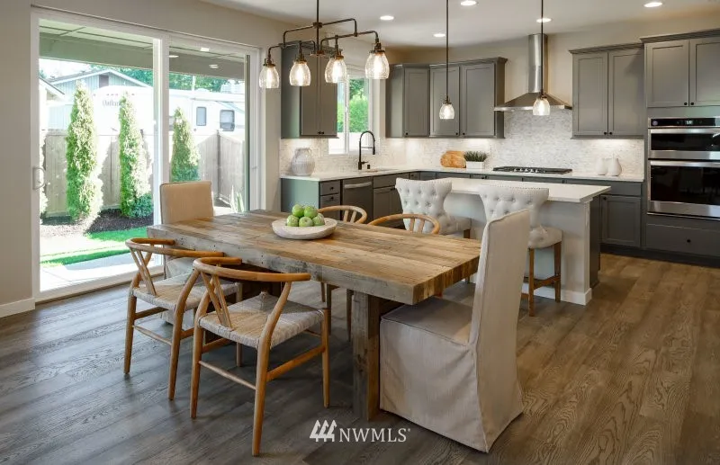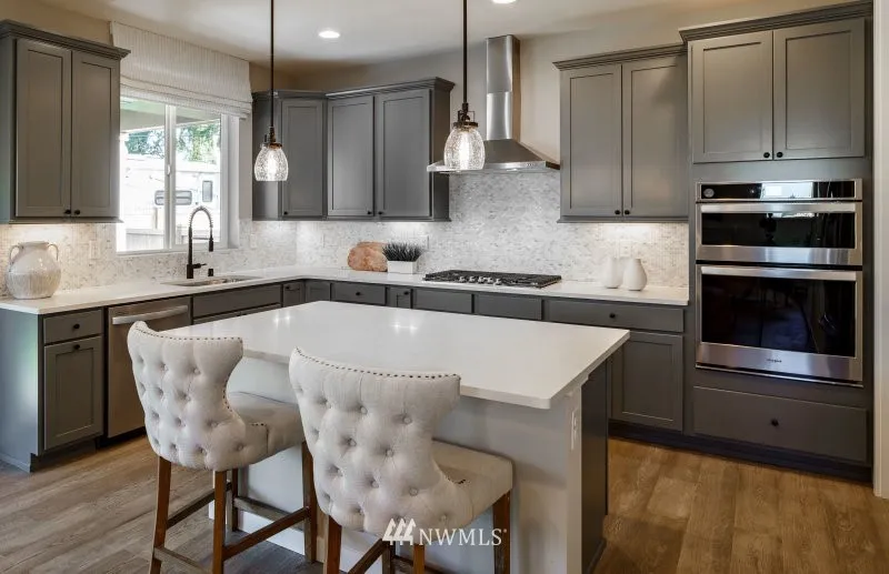 MOVE-IN READY!! AMAZING OPPORTUNITY to own the former MODEL HOME! Includes bedroom & 3/4 bath on MAIN, expanded covered patio, garage service door, FENCED yard. Professional designer selected finishes like quartz counters at all baths, chef kitchen with FRIDGE, cabinets with soft close doors/drawers throughout, boot bench, BLINDS, WASHER, DRYER, more! Loads of SMART HOME technology installed! Photos are of actual home, and see virtual tour. Walk to Morrill Meadows Park & new Kent YMCA.