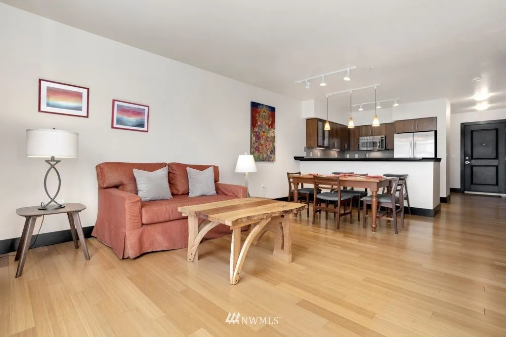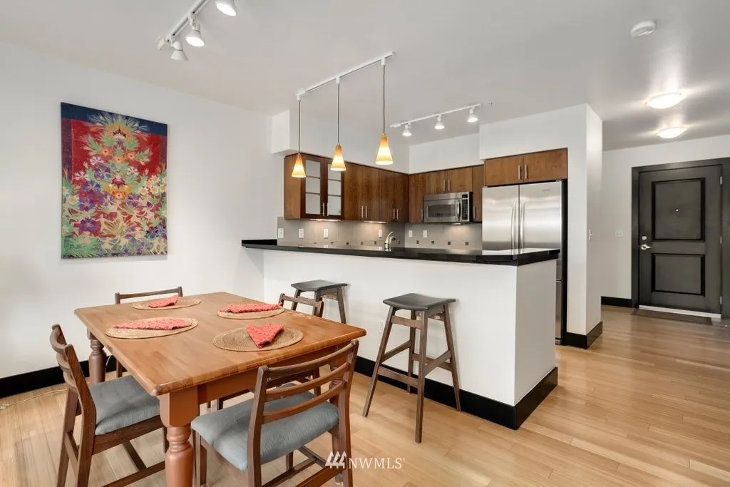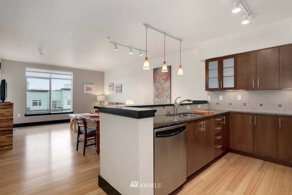 Pop into Cafe Besalu, indulge in a favorite pastry and coffee, enjoying neighborhood conversation. Lounge on your private balcony, taking in canal views and spectacular Seattle sunsets. Relish being blocks from year-round Ballard Farmers' Market. This roomy top floor one BR + den offers crisp finishes & surprising privacy. This NOMA condo includes: A/C, rooftop deck, gym, theater & meeting rooms. No rental cap, plus a most enviable, central Ballard location. 94 Walk Score! HIP. CENTRAL. FUN.