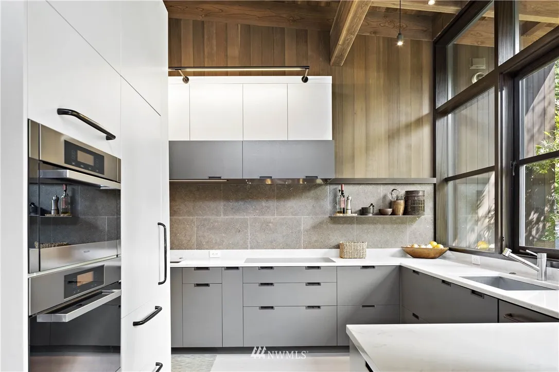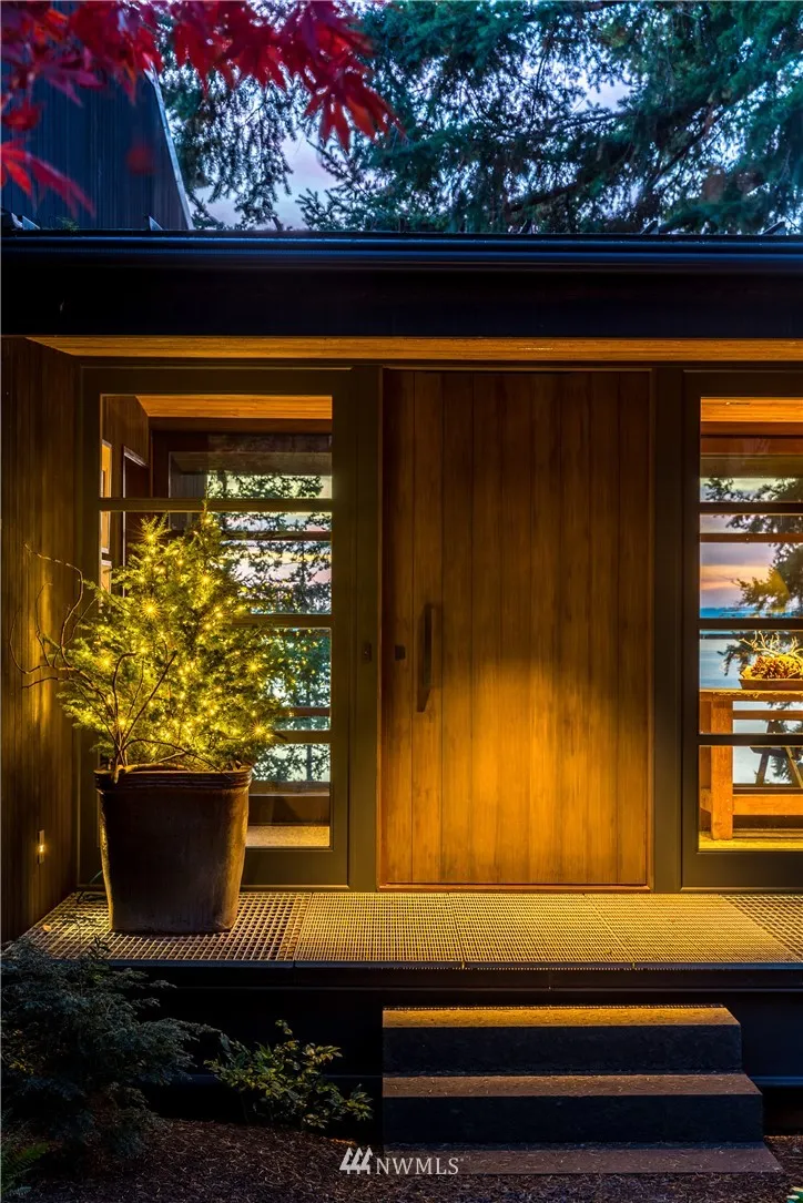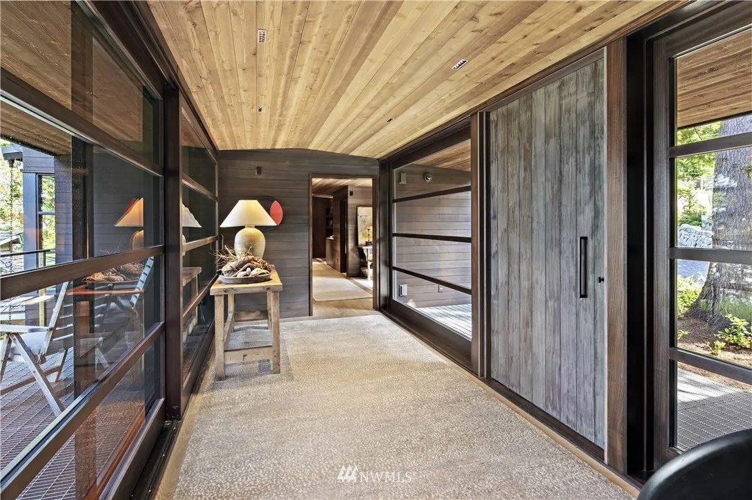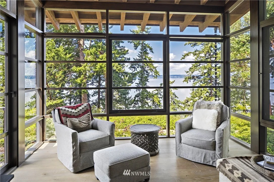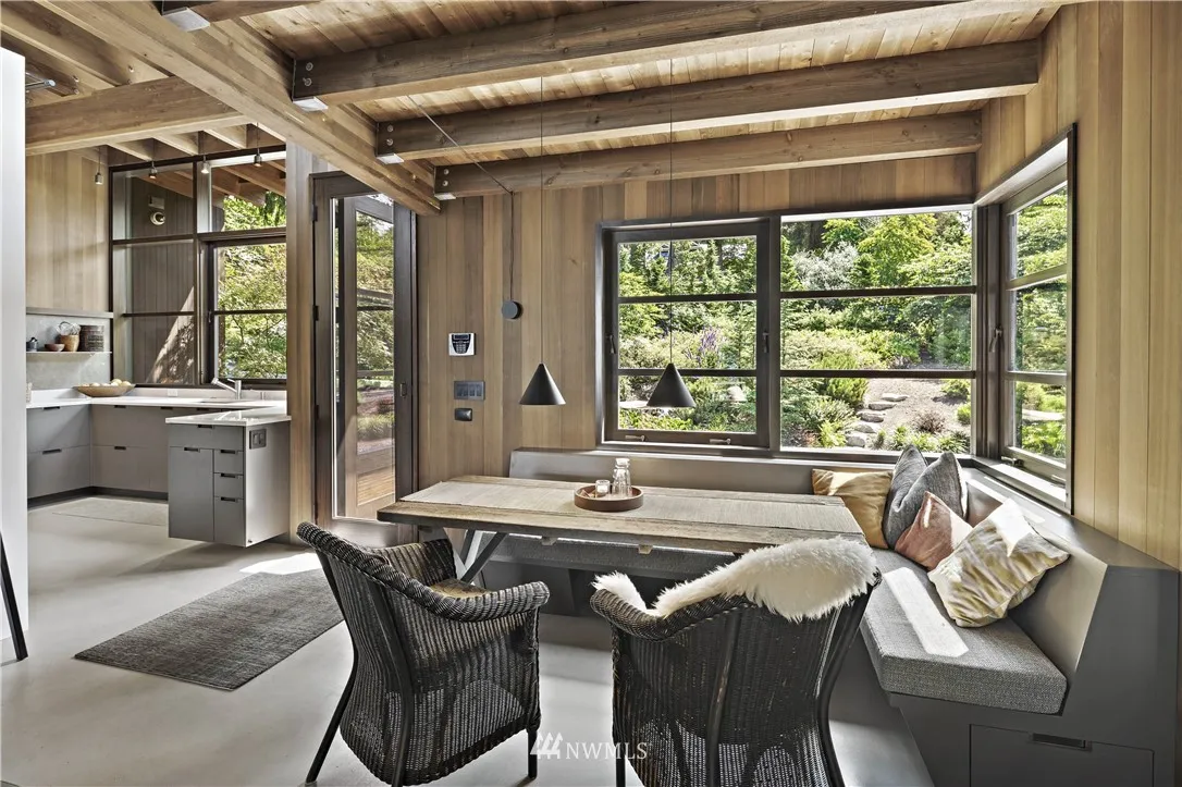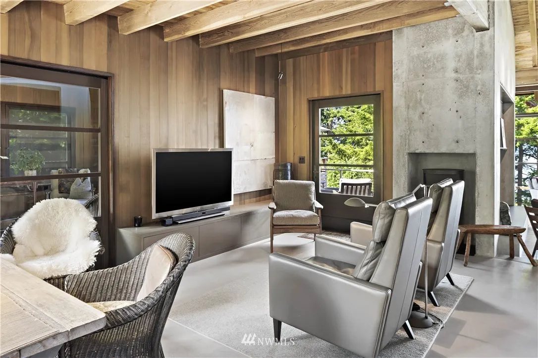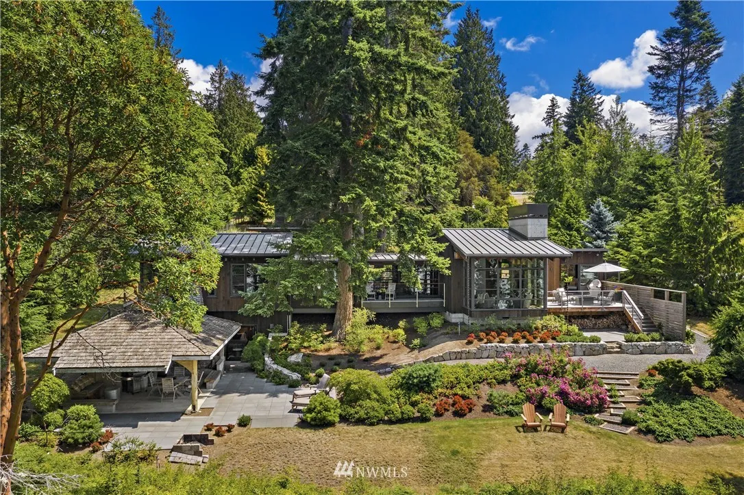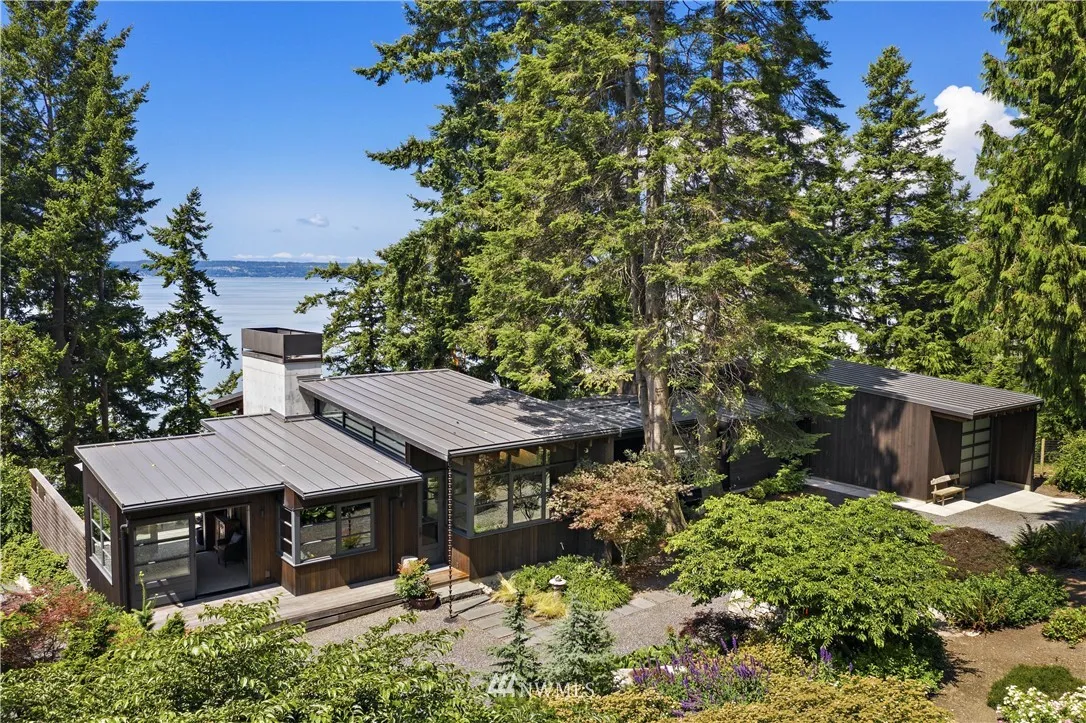 Privately tucked away in naturalized waterfront landscape,clean contemporary lines & open light filled spaces blend in this home w/cozy warmth of cedar walls,blackened steel,wood ceilings,concrete fireplaces & sliding window walls opening to the outside. Radiant heat,European style cabinetry & premium fixtures,appliances. Waterside large cabana w/stone fireplace. Add an architecturally conceived workshop & office, beach trail & new bulkhead = the style you are looking for w/ NW life at its best.