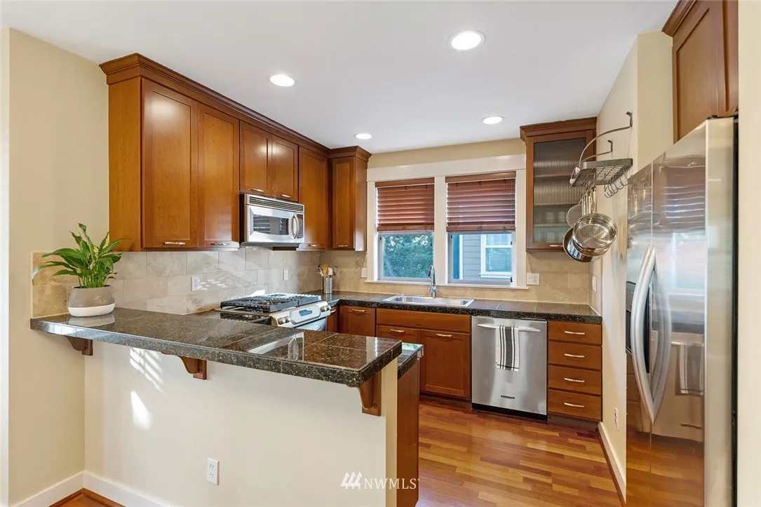 Enjoy the park-like setting of Windermere Place in this bright, end unit 3BD townhome! Open layout flows from cozy living area, spacious dining, to kitchen w gas range & custom storage. Hardwoods continue upstairs into large master suite and 2nd BR/office--each w vaulted ceilings & dedicated bath. Lower level BR w 3/4 bath offers guests privacy. Leave the car in the garage & enjoy nearby Magnuson Park, Burke-Gilman Trail, U Village, Sand Point Village, or head to UW, Seattle Childrens & beyond.