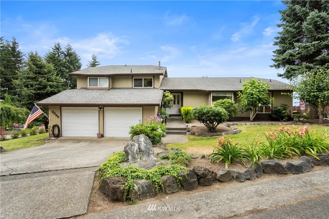 Exceptionally well maintained Twin Lakes home with incredible views of the Puget Sound! This lovingly cared for home boasts 3 large bedrooms, an en suite, guest and lower level bathroom, a large garage, bonus room and lots of space to entertain! Views from multiple locations within the home! Beautifully landscaped front and backyard, French doors off the master, walk in closets, vaulted ceilings, and wonderfully updated throughout! This home has it all!