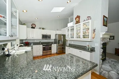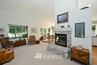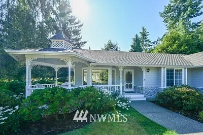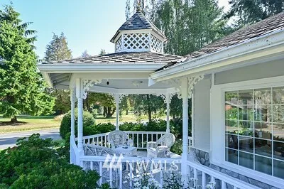 Minutes from the hood canal bridge awaits this beautiful rambler on the 5th tee. Homes features updated kitchen with lot's of storage. Relax outside under a attached gazebo and watch the wild life or cozy up inside next to the two sided river rock fireplace. Den with french doors that you and easy make into an office or use as an extra bedroom. Also an extra bonus room that you can enjoy doing your hobbies in. Lot's of natural lighting. Beautify designed home. All appliances stay.