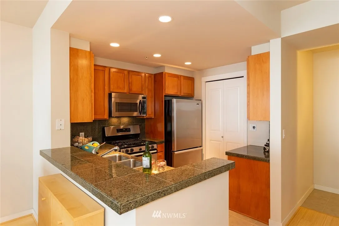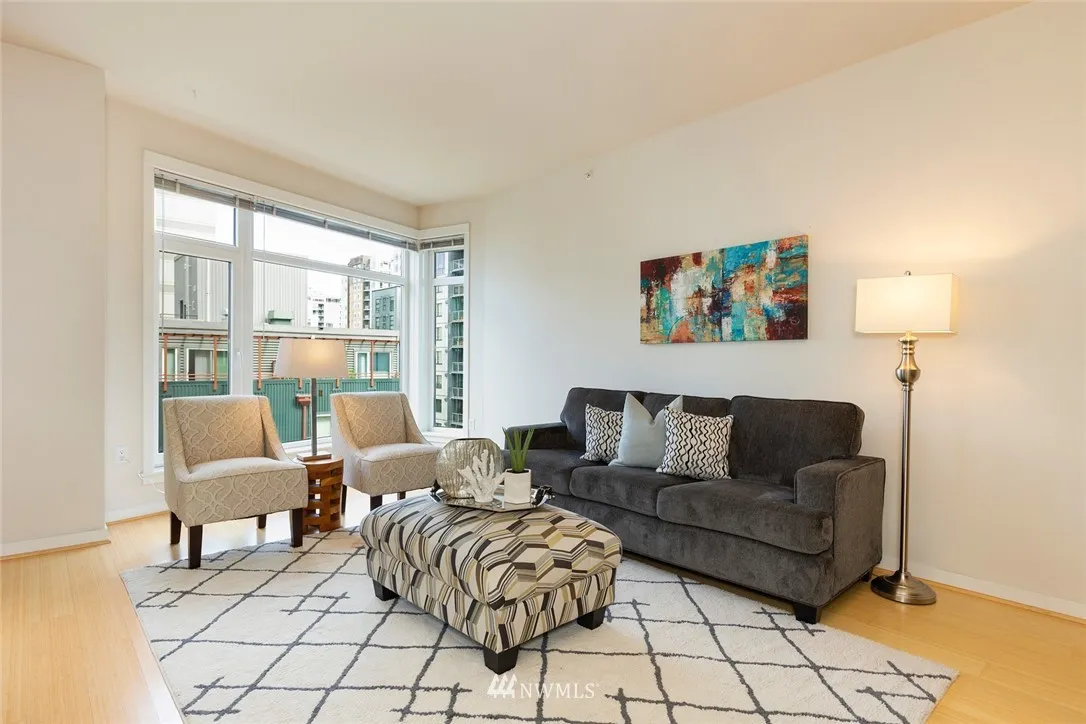 Award-winning Concrete & Steel building. Exceptional 1BDR + XL Den w/rare 2-car Prk & Stg. Beautifully updated w/ Bamboo Hdwd Flrs thru-out, Stunning kitchen w/granite Countertops, Gas cooking & Stainless Steel Applcs! Cov'd deck for outdoor entertaining w/snd views! Luxury bldg w/24-7 concierge, gym, party rm w-wifi, 2-guest suites & 1 of the most stunning view rooftop decks dwntwn! Hands down, the best value in Belltown!